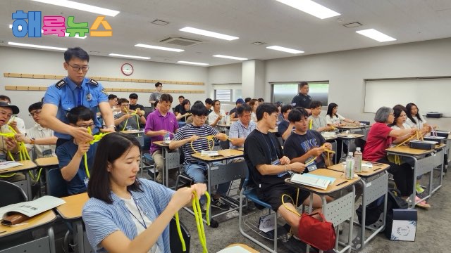 해양경찰교육원(원장 한상철)은 지난 4일부터 (1차 38명, 2차 39명) 각각 2박 3일간 주간 교육원 내 해양구조 및 모의선박실습장에서 전국 초등교원 77명을 대상으로 ‵2025년 초등교원 생존수영 직무연수' 과정을 운영 중이라고 7일 밝혔다.