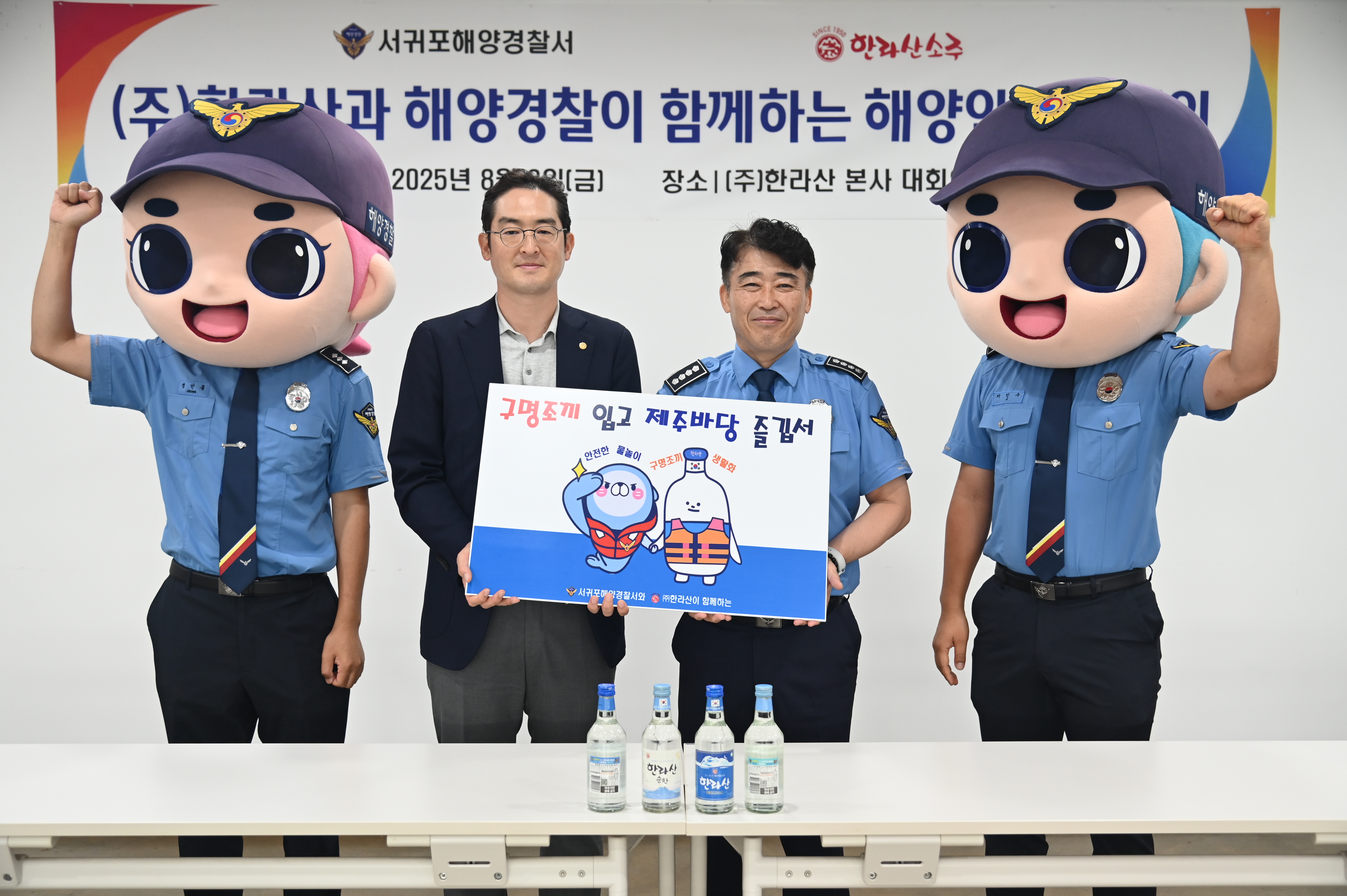 서귀포해양경찰서(서장 김서구)는 오늘(8일) ㈜한라산(대표 현재웅)과 해양 안전 문화 확산 상호 협력을 위한 해양안전 캠페인을 진행했다고 밝혔다.