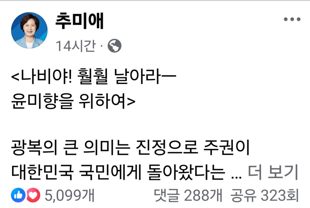 (본 게재글은 추미애 의원님의 페이스북 포스팅을[펌}하여 게재하였씀을 알려드립니다. -끝-