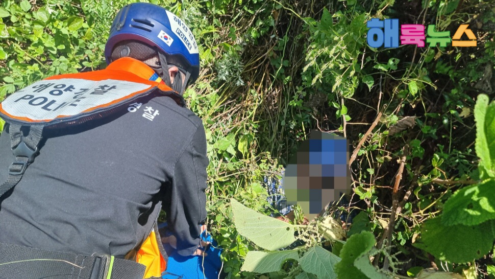 신고를 접수한 완도해경은 경비함정 323함을 현장에 급파, 경찰관들이 직접 산을 오르며 수색에 나섰다. 한낮의 직사광선이 내리쬐고, 수풀로 인해 시야 확보가 어려운 열악한 환경 속에서도 수색을 이어갔고, 약 30분만에 A씨를 발견해 응급조치 후 완도해경전용부두까지 무사히 이송했다.