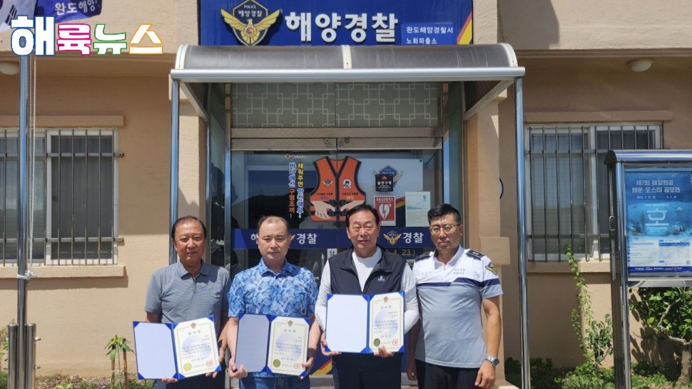 바다 위 생명 구한 노화도 마을 주민 3명에 감사장 수여 (사진=완도해경)