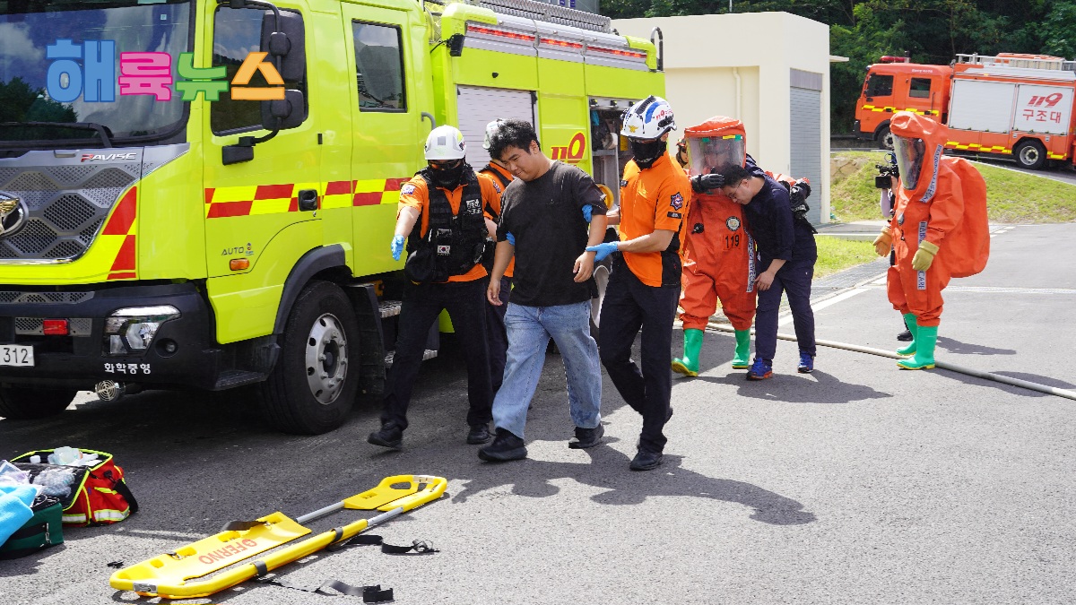 이번 훈련에는 여수소방서를 비롯한 10개 유관기관이 참여해 ▲자폭 드론 출현에 따른 화학(폭탄) 테러 대응 ▲재난안전통신망을 활용한 기관 간 합동대응 등을 중점적으로 훈련한다. 여수소방서는 화학구조대 중형펌프차, 구급차, 구조공작차 등 차량 4대와 인원 14명을 투입해 초기 대응과 인명구조 활동을 수행했다.