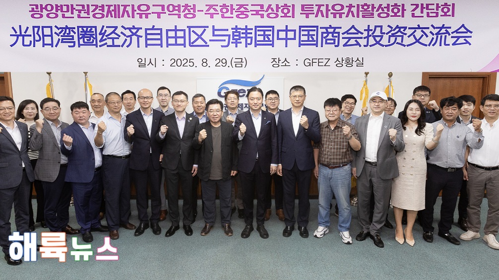 광양만권경제자유구역청(청장 구충곤, 이하 광양경자청)은 8월 29일 청사 상황실에서 까오천(高晨) 주한중국상공회의소 회장과 임원진들을 만나 광양만권의 투자환경을 소개하고 경제·무역 및 투자 활성화 방안을 논의했다고 밝혔다.
