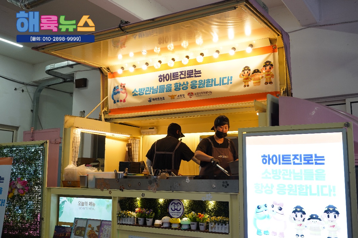 여수소방서(서장 서승호)는 9월 12일(금) 본서에서 하이트진로 후원으로 ‘감사의 간식차’를 운영했다. 이번 행사는 평소 시민 안전을 위해 헌신하는 소방공무원들의 노고를 격려하고 사기를 진작하기 위해 마련됐다.