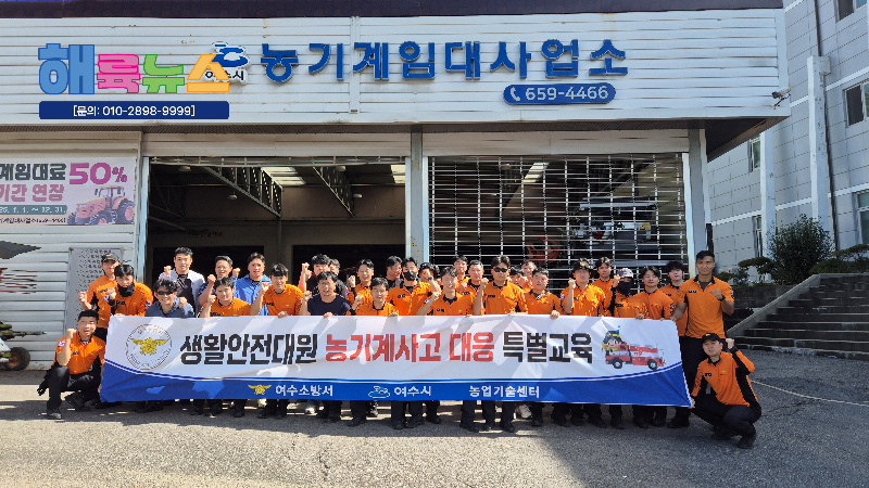 이날 훈련은 여수시 농업기술센터 농기계임대사업소에서 소방공무원 30여명이 참석하여 진행되었으며, 농기계별 사고 대응 능력 강화와 신속한 안전사고 대응체계 구성을 통한 지역사회 안전 확립을 위해 마련됐다.