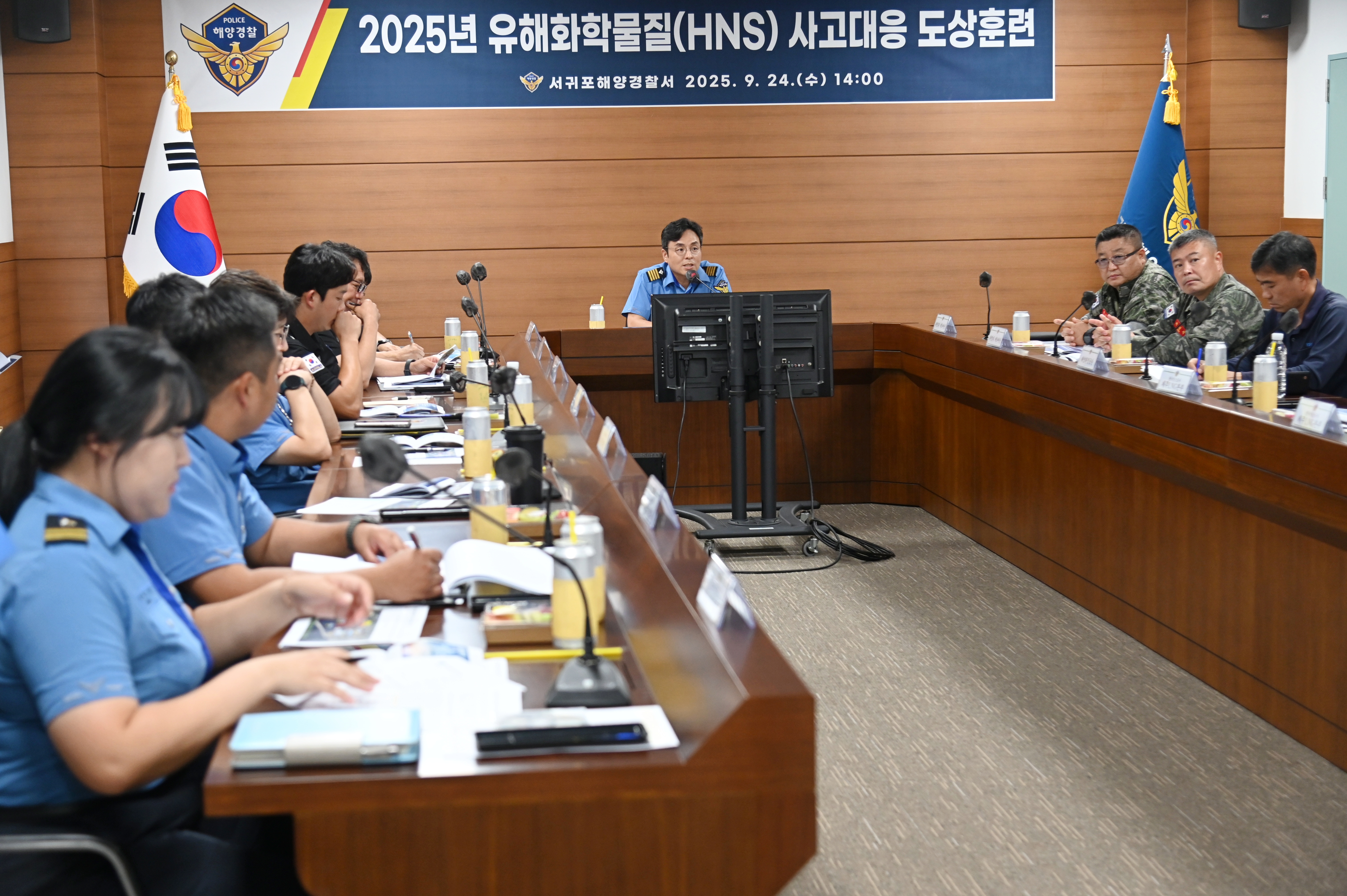 서귀포해양경찰서(서장 김서구)는 최근 LNG의 친환경선박 확대와 해상 운송량 증가로 인해 사고 발생 가능성이 커지고, 올해 9월 1일 국가긴급방제계획에 LNG가 위험·유해물질로 신규 지정됨에 따라 운송 선박 사고를 대비한 “25년 유해화학물질 사고대응 도상훈련”을 실시했다고 밝혔다.