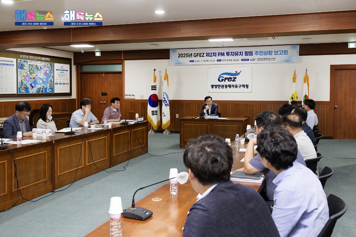 광양만권경제자유구역청(청장 구충곤, 이하 광양경자청)은 25일 청사 상황실에서 투자유치 담당 PM(Project Manager) 등 임직원 20여 명이 참석한 가운데, ‘2025년 제2차 PM 투자유치 활동 추진 상황 보고회’를 개최했다고 밝혔다.