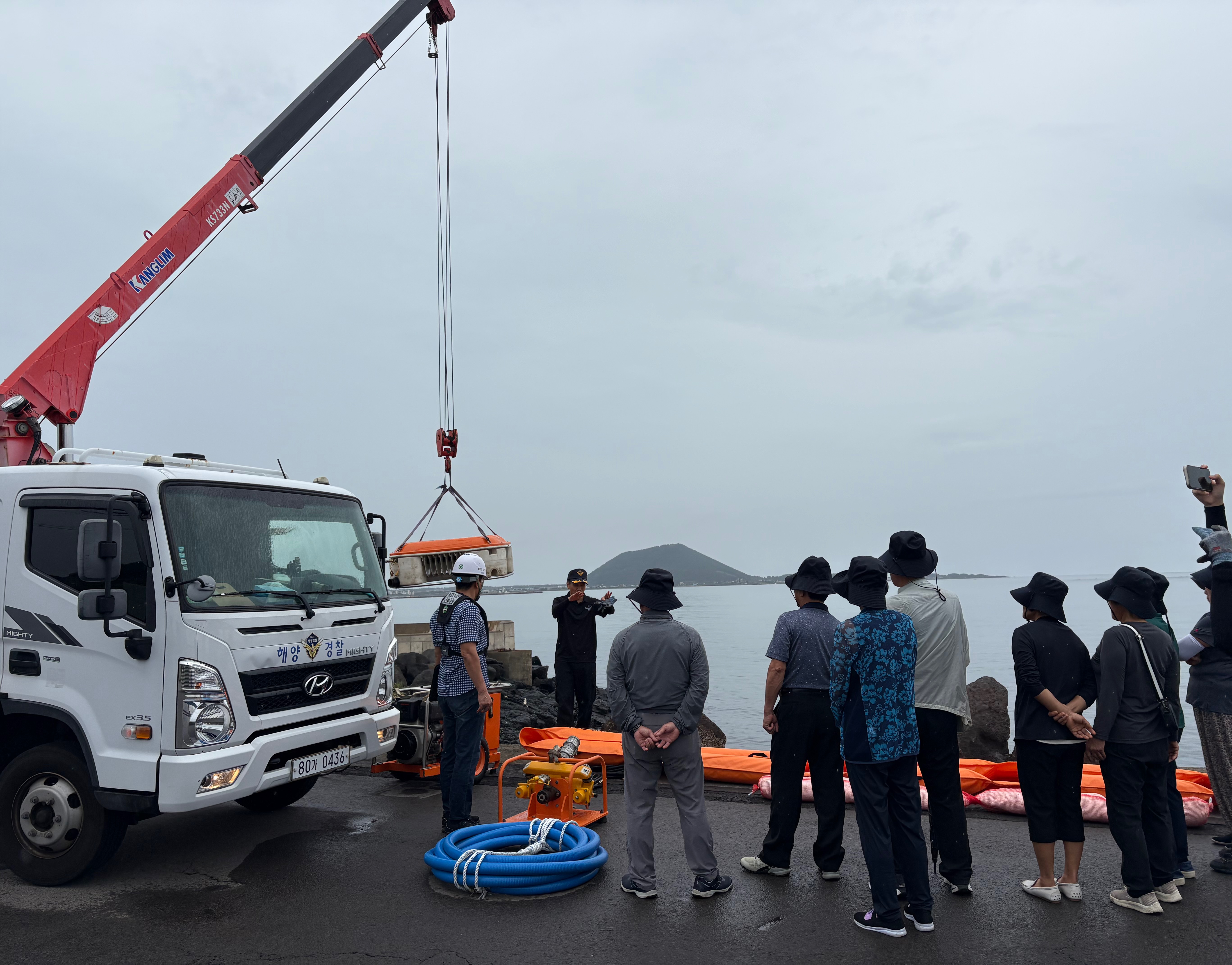 서귀포해양경찰서(서장 김서구)는 오늘(26일) 신산, 성산 해양자율방제대를 대상으로 해양오염사고 대응 역량 강화를 위한 ‘찾아가는 해양자율방제대 교육·훈련’을 실시했다고 밝혔다.