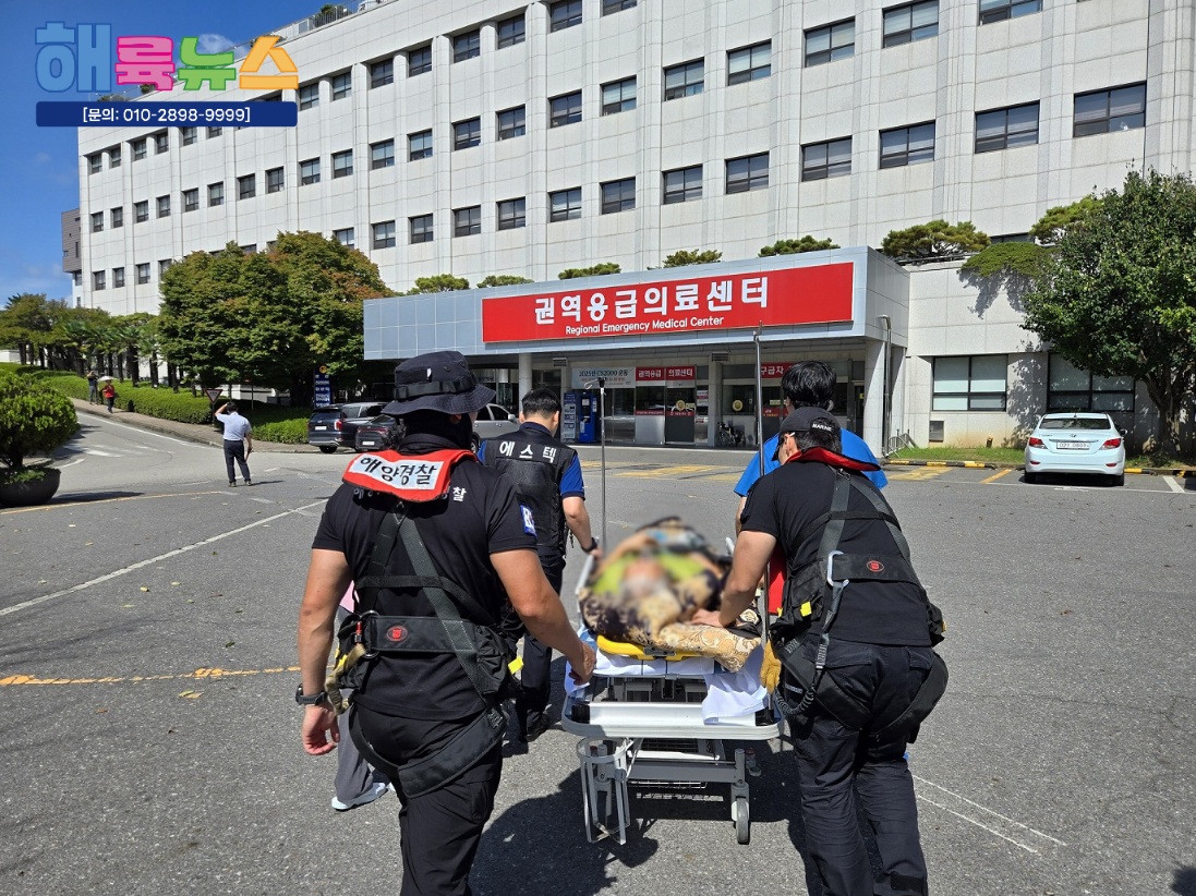 200톤급 경비정이 현장에 도착해 어선 A호로부터 환자를 인수받아 응급처치를 진행하며 여수시 연도 헬기장으로 이동하였고, 헬기장에서 대기 중이던 여수회전익항공대 헬기에 응급환자를 인계했다.