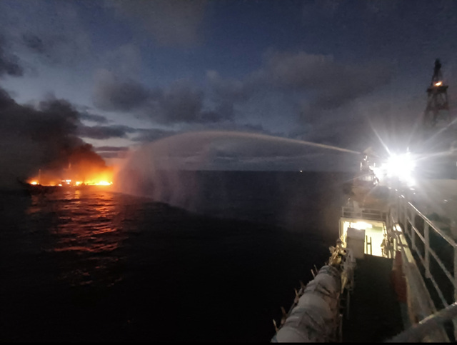 서귀포해경은 화재 현장에 도착한 직후부터 현재까지 함정 소화포 등을 이용 소화작업을 지속 실시 중에 있다.