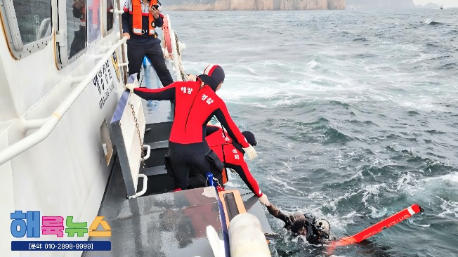 15시 10분경 입수지점으로부터 서쪽으로 약 4.5km 떨어져있는 해상에 표류중인 다이버 A씨를 수색에 동원된 항공기가 발견하였고, 경비함정을 즉시 이동시켜 사고발생 1시간만에 A씨를 무사히 구조하였다.