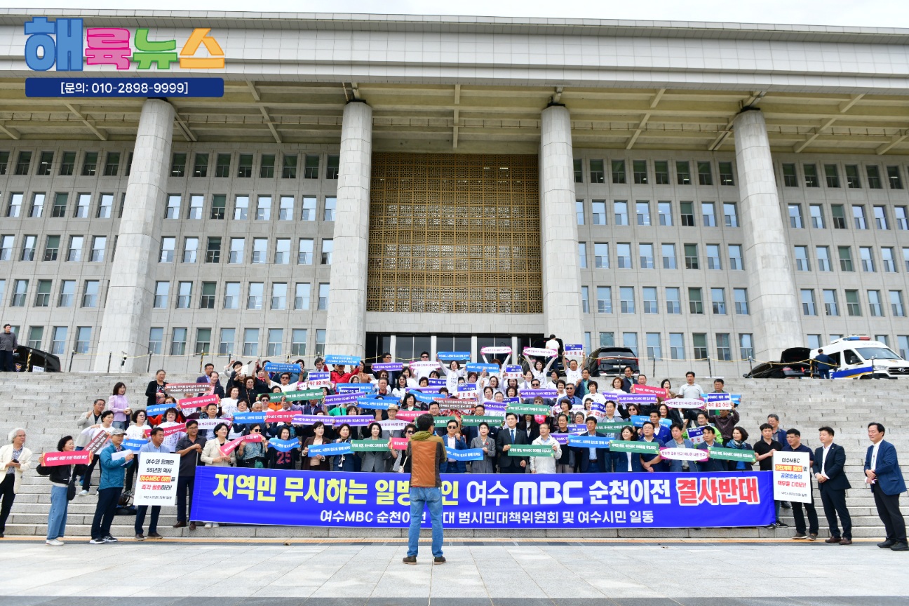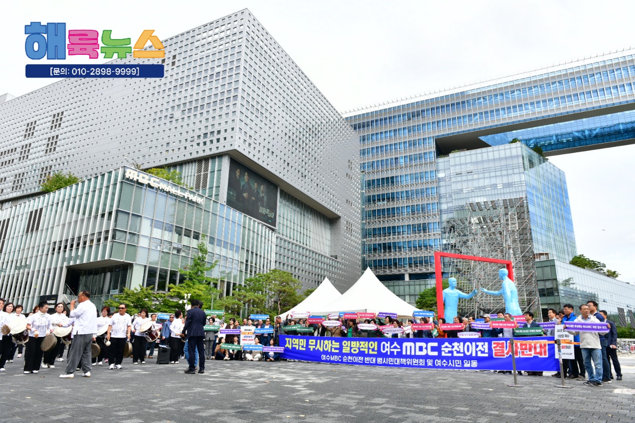 여수시의회(의장 백인숙)는 10월 14일 MBC본사와 국회에 항의 방문하며 여수MBC 순천 이전 철회를 강력히 촉구했다.