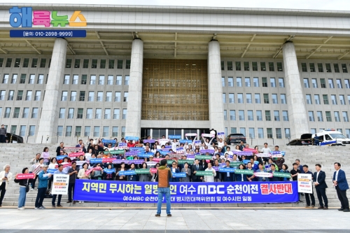 여수시의회(의장 백인숙)는 10월 14일 MBC본사와 국회에 항의 방문하며 여수MBC 순천 이전 철회를 강력...