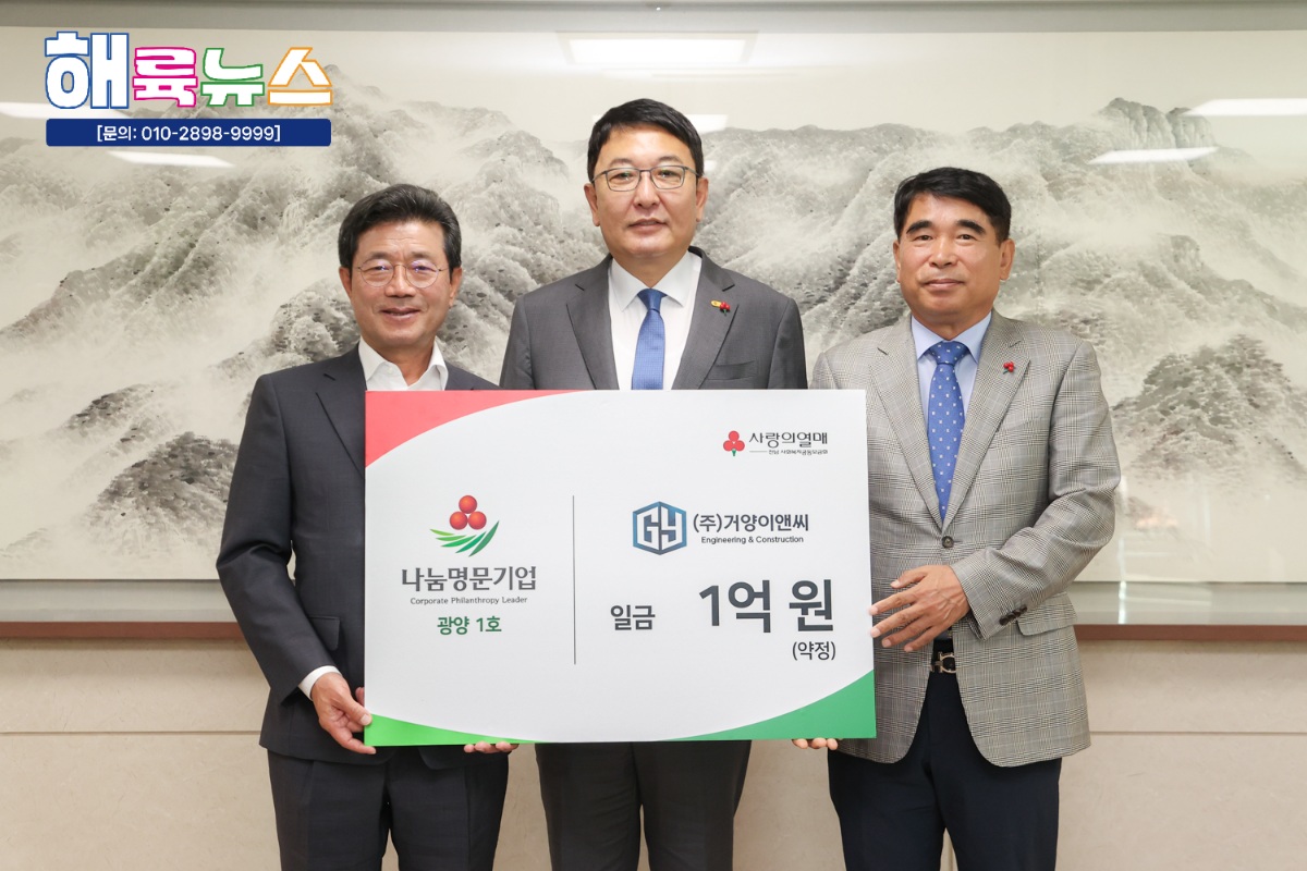 허영호 전남사랑의열매 회장은 “㈜거양이앤씨의 따뜻한 나눔과 헌신에 깊이 감사드린다”며, “기업의 나눔은 지역사회에 큰 힘이 되어 우리 사회를 더욱 따뜻하고 희망차게 만든다. 앞으로도 모두가 함께 나누는 사회를 만들어갈 수 있도록 최선을 다하겠다”고 전했다.