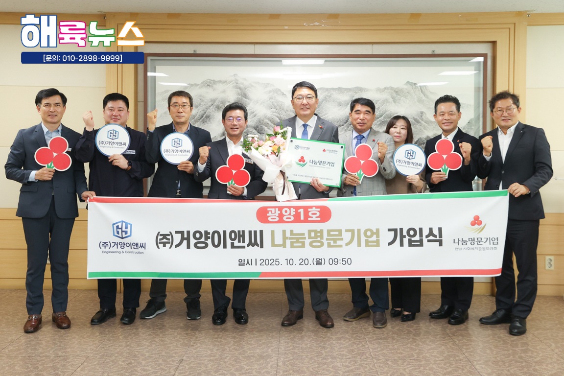 광양시는 10월 20일 ㈜거양이앤씨의 「전남사랑의열매 나눔명문기업」 가입식을 개최했다고 밝혔다.