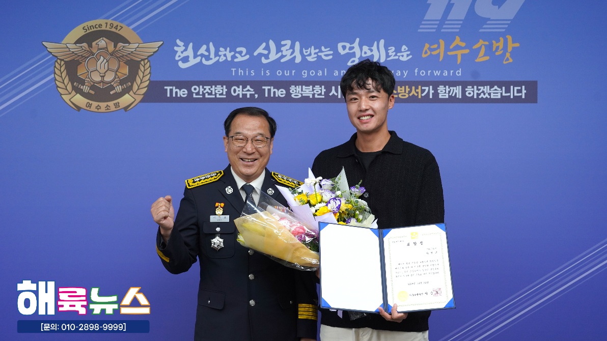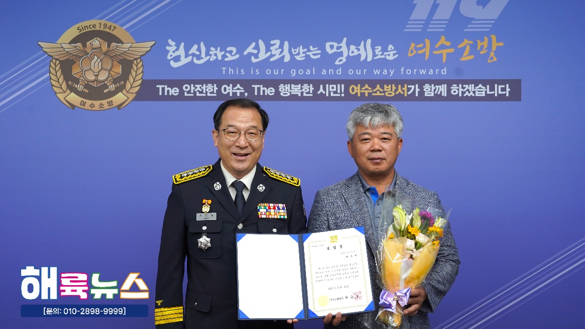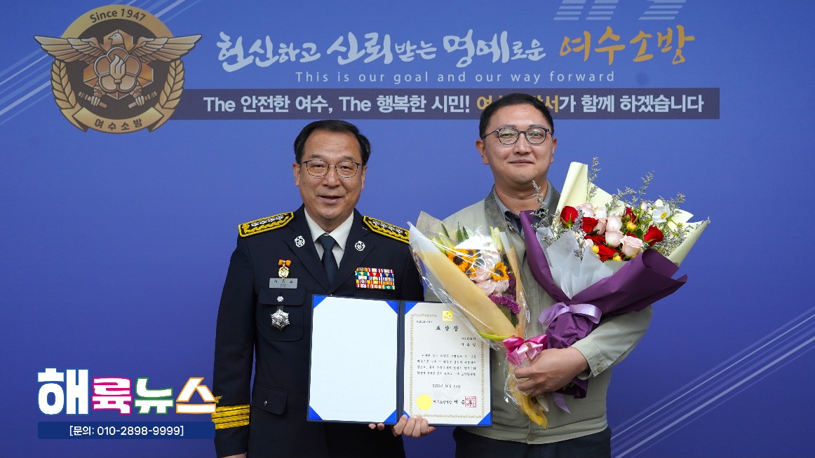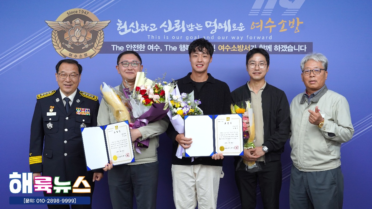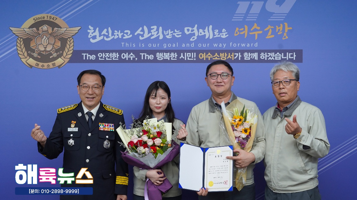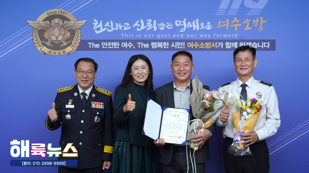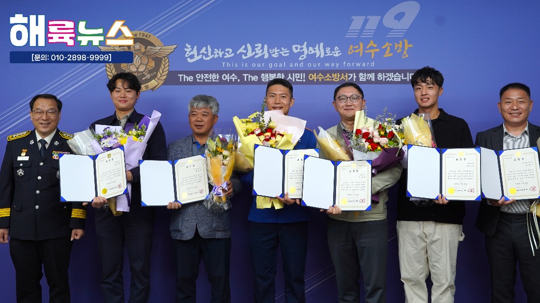 여수소방서(서장 서승호)는 10월 20일(월) 본서 2층 서장실에서 **‘2025년 10월 중 소방서장 표창 수여식’을 개최했다.