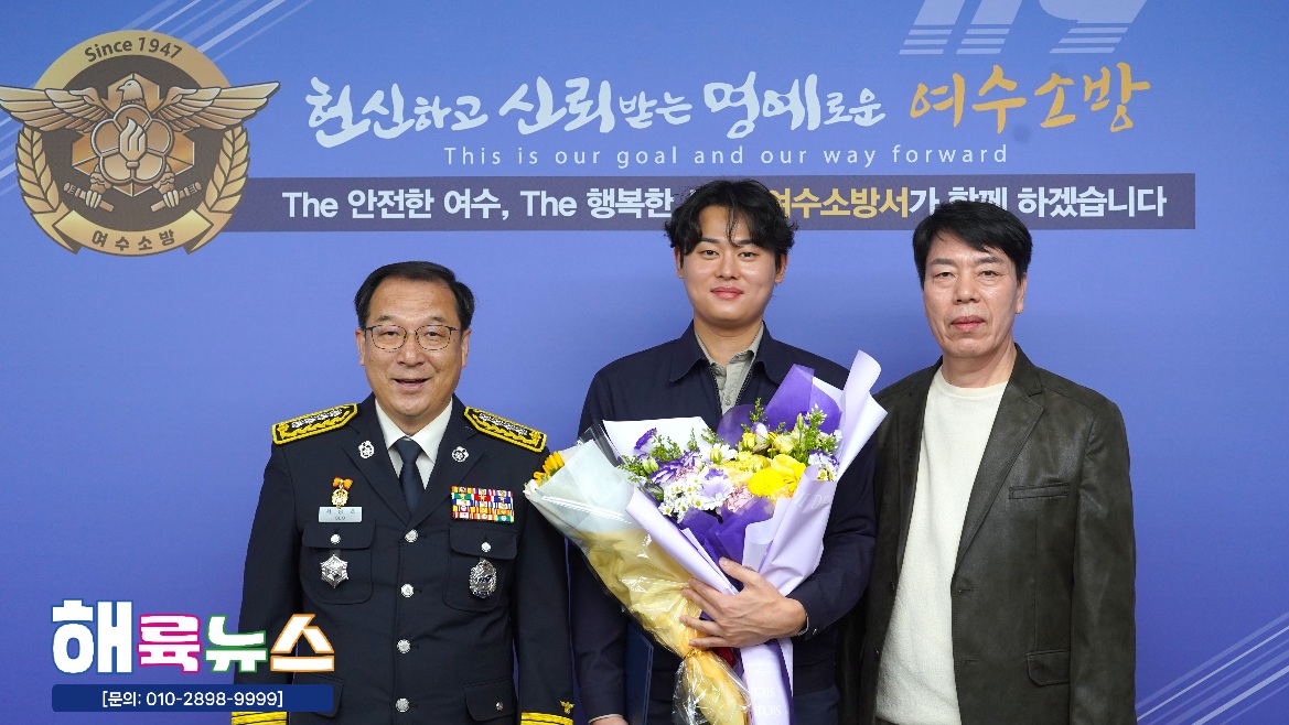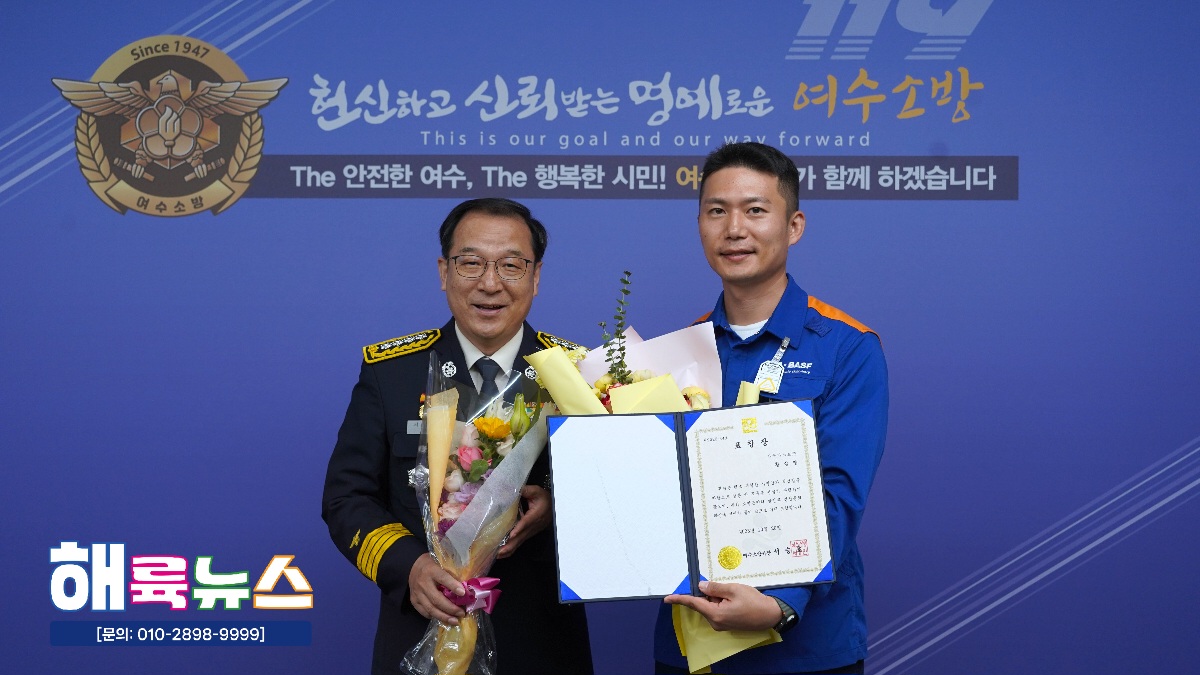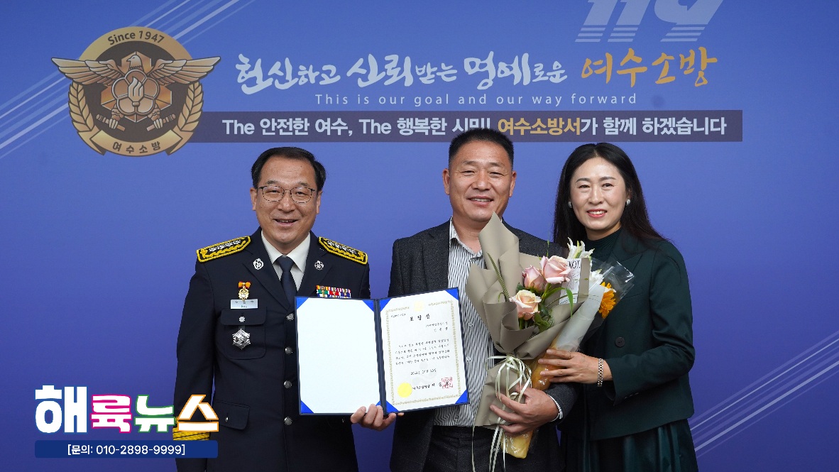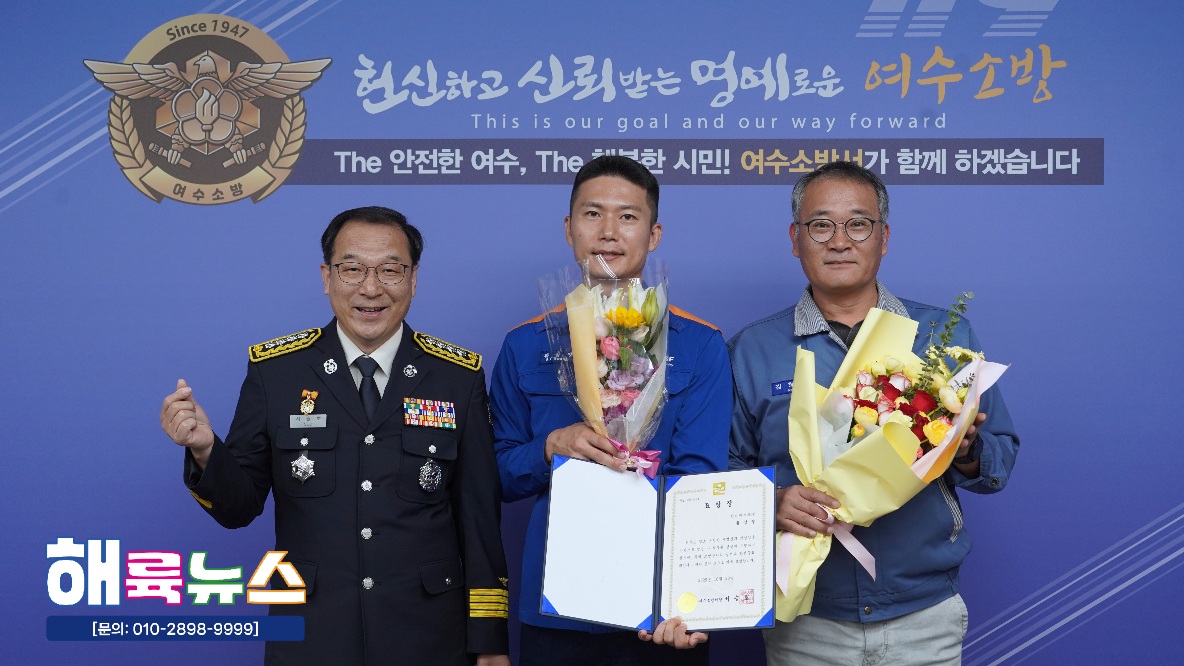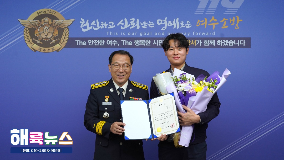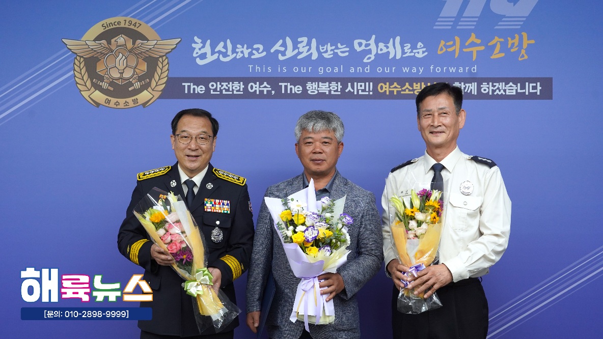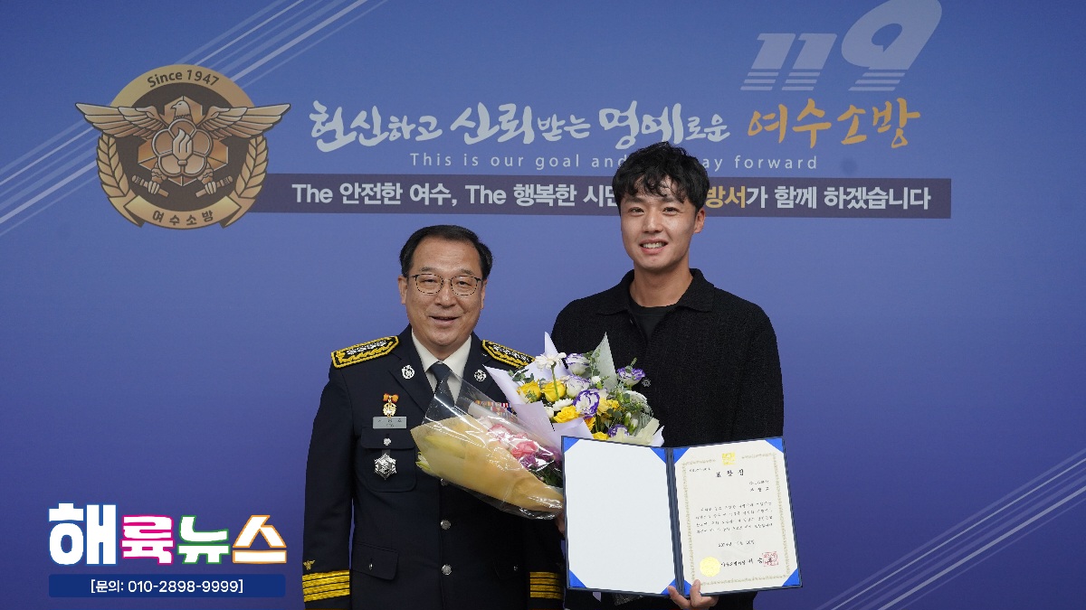 여수소방서(서장 서승호)는 10월 20일(월) 본서 2층 서장실에서 **‘2025년 10월 중 소방서장 표창 수여식’을 개최했다.