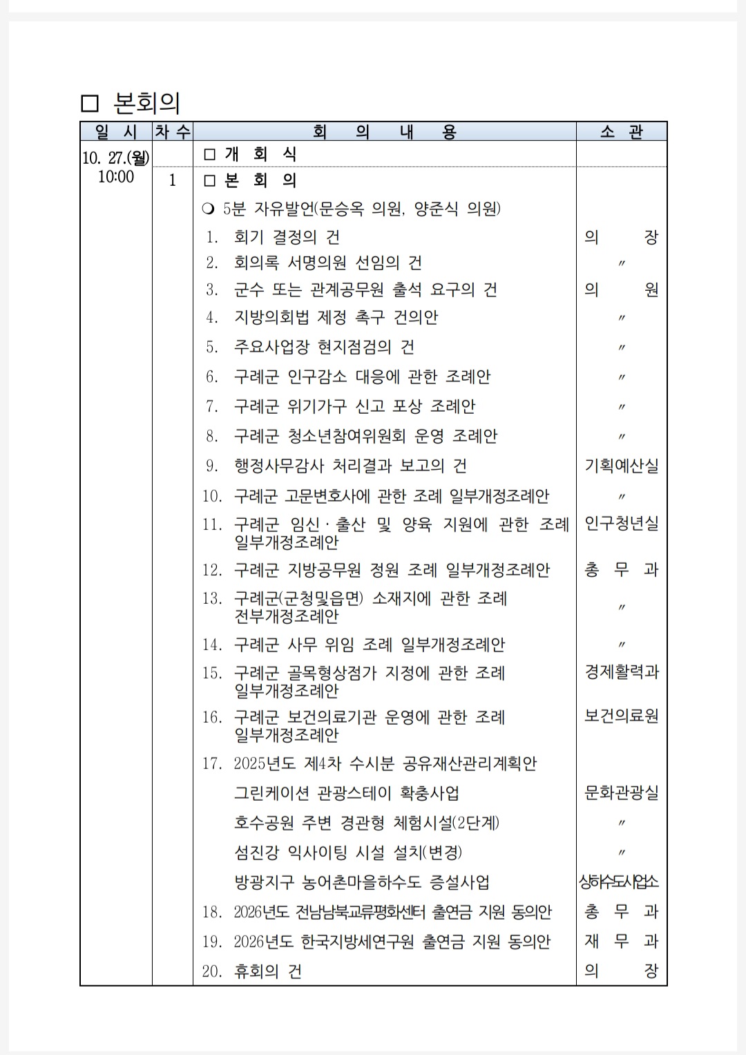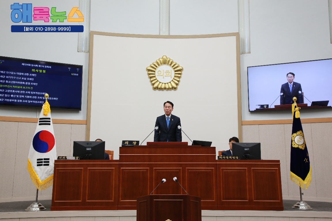 구례군의회(의장 장길선)는 지난 10월 27일 본회의장에서 제324회 임시회를 개회했다고 밝혔다.