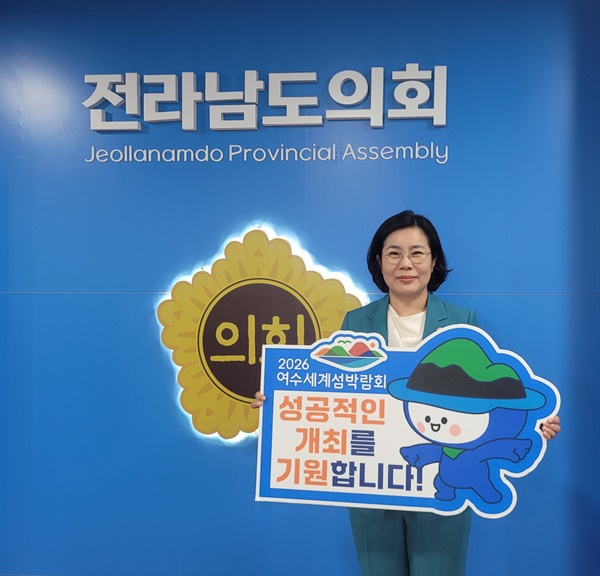 전라남도의회 경제관광문화위원회 박경미 부위원장(광양4, 더불어민주당)은 「2026여수세계섬박람회」의 성공 개최를 기원하는 릴레이 응원 챌린지에 동참하며 박람회에 대한 도민의 관심과 참여를 적극 독려했다.