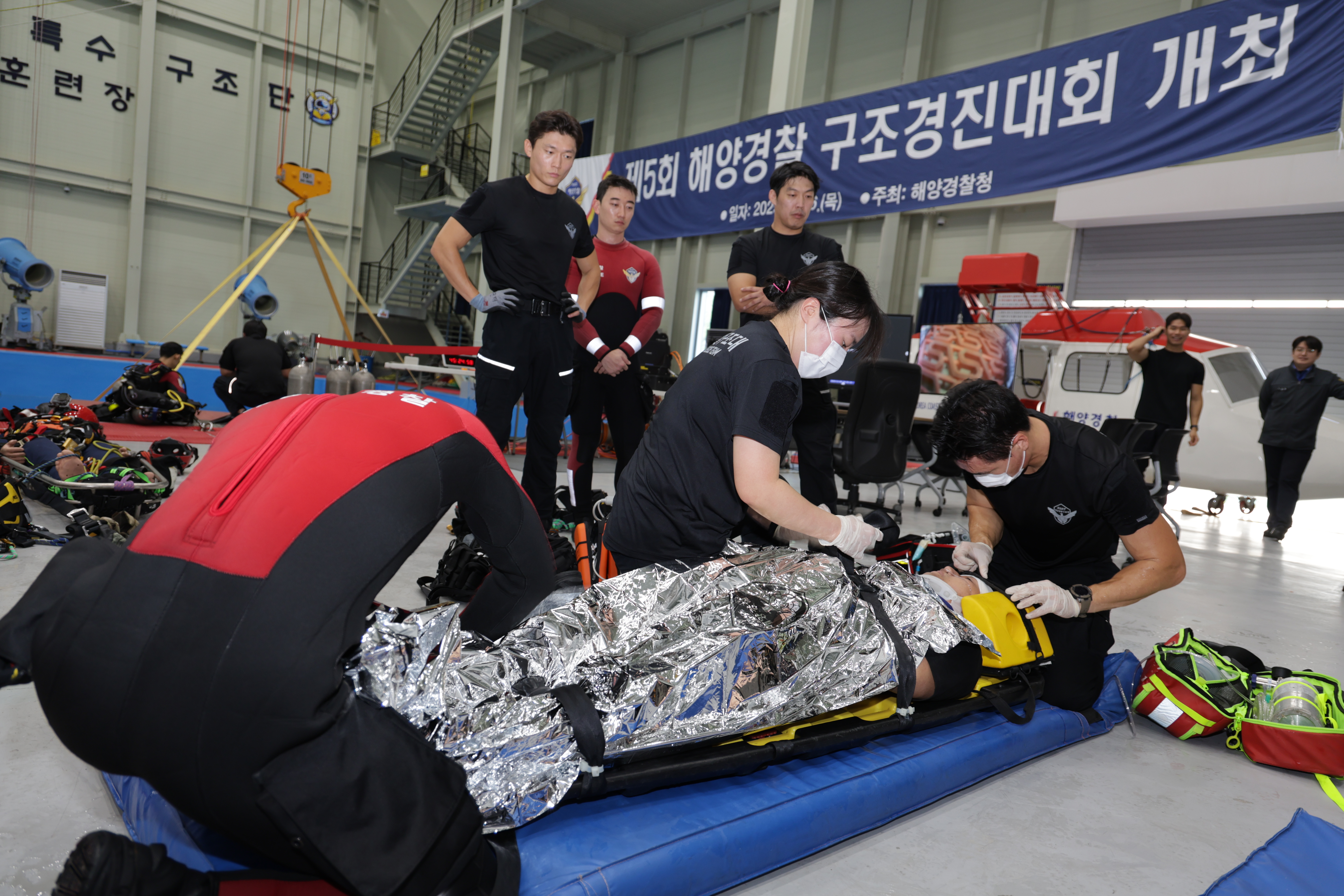 이번 대회는 해양경찰청 수색구조과 주관으로, 전국 18개 구조대 중 각 지방청을 대표하는 5개 팀이 참가해 「선박구조」와 「연안구조(로프구조·응급처치)」 2개 종목에서 구조기법과 팀워크를 겨루는 실전형 경연대회로 진행됐다.