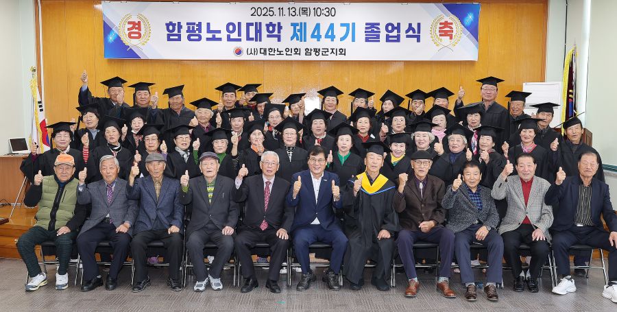 전남 함평군이 또 한 번 따뜻한 감동을 선사했다. 지난 13일, 대한노인회 함평군지회 대강당에서 열린 제44기 노인대학 졸업식은 단순한 행사가 아닌, 배움의 열정과 공동체의 온기를 확인하는 자리였다.