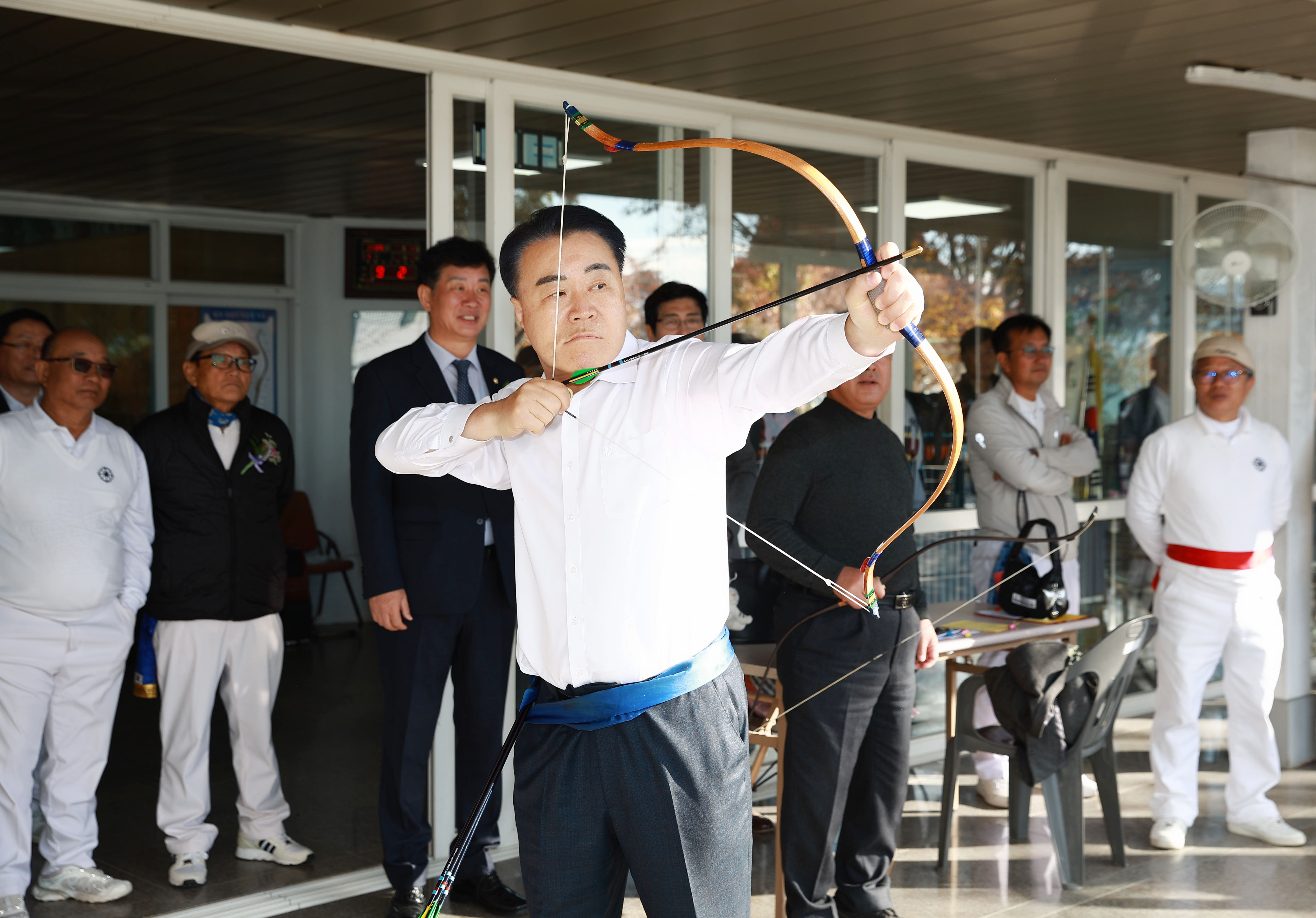 사진 2: 구복규 군수의 활쏘기 시연 모습(무안군 제공)