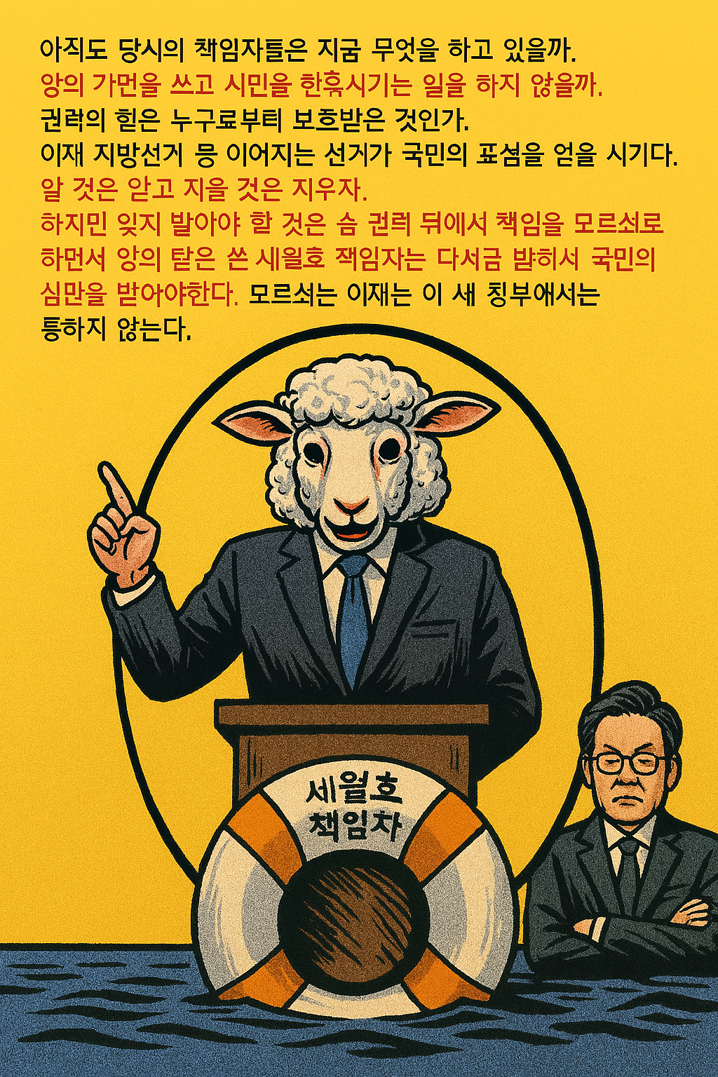 하지만 우리는 잊지 말아야 한다. 그날, 책임 있는 자리에 있던 이들이 “나는 모른다”라며 책임을 회피했던 기억. 언론과 시민의 목소리를 막으려 했던 기억. 그 기억은 여전히 우리 사회의 경고로 남아 있다.