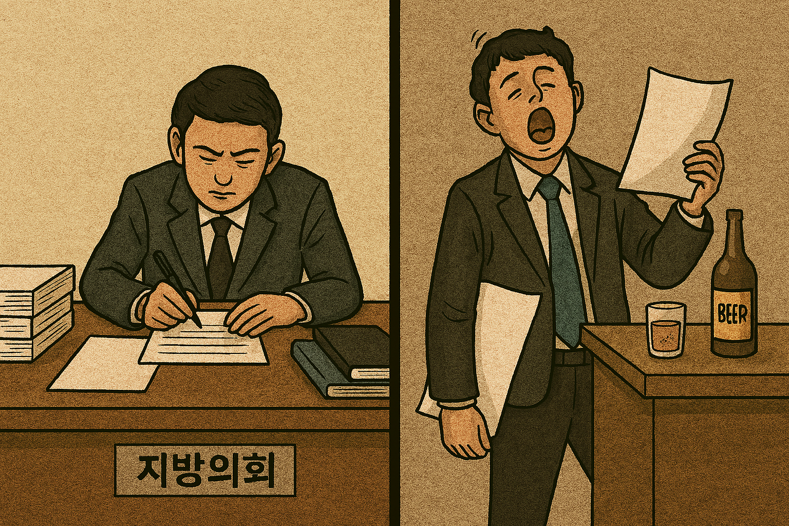민선 9기 지방선거가 다가오면서 지역 의회는 분주해야 할 시점이다. 그러나 일부 의원들의 모습은 시민의 기대와는 거리가 멀다. 업무보고 중 중식 시간에 술을 마신다는 의혹, 의정활동의 무기력함, 그리고 후무안무취(厚無案無取)—두터운 자리엔 안건도 없고, 얻는 것도 없다는 말처럼—그저 방황하는 모습이 일각에서 지적되고 있다.