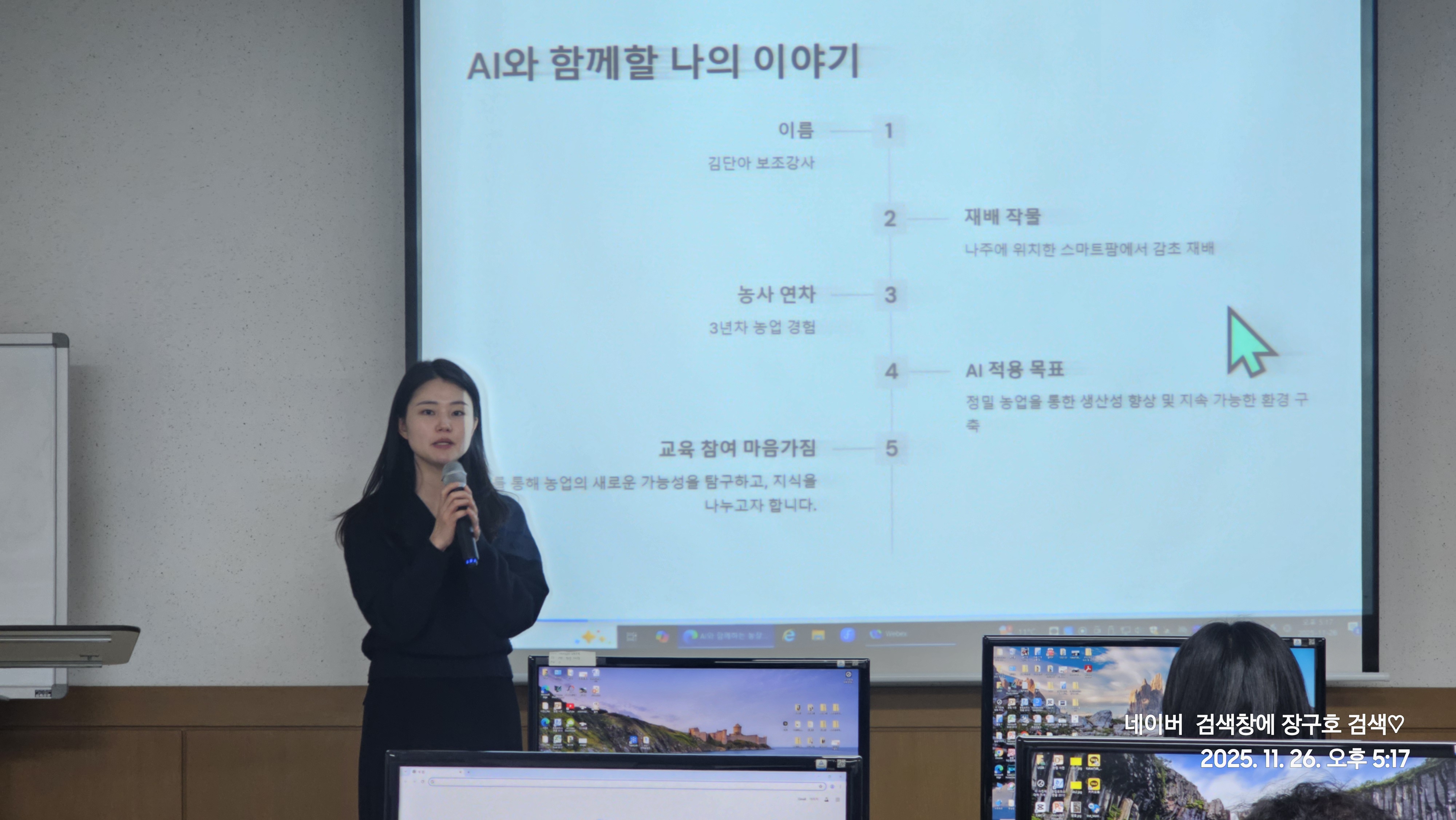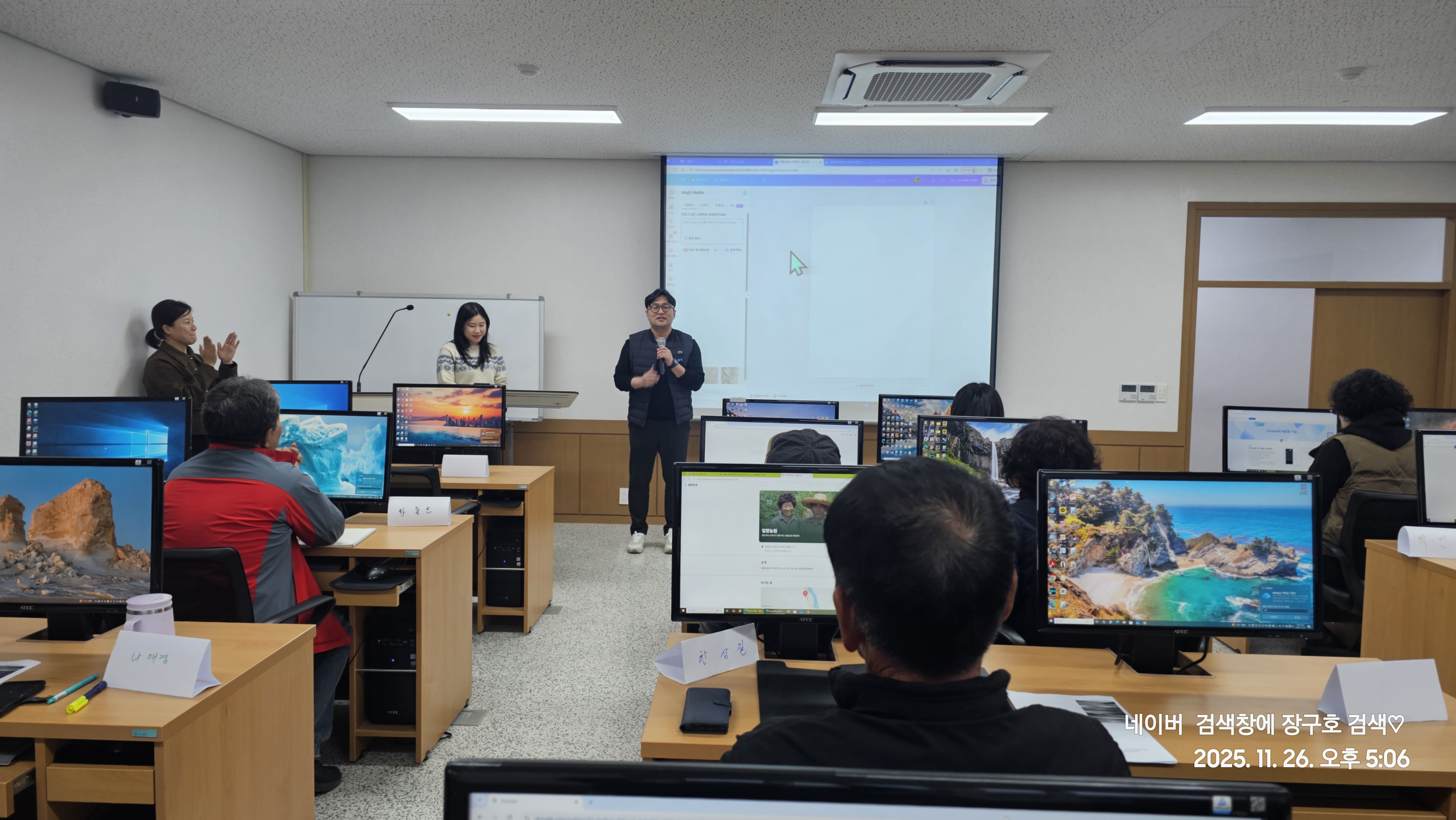 이번 정보화교육의 강사는 농촌진흥청 농산업경영과 현장 명예연구관인 박명진 강사(보조강사 김단아)로 진행되며 다양한 AI플랫폼 및 농산물 특성에 맞는 프롬프트를 작성하여 실습을 통해 결과물을 얻고 홍보, 배포를 통해서 교육의 효과를 내는 생성형 AI를 활용한 농산물 홍보 이미지 및 영상제작 교육은 농업인들의 뜨거운 교육 열기가 겨울밤을 녹였다.