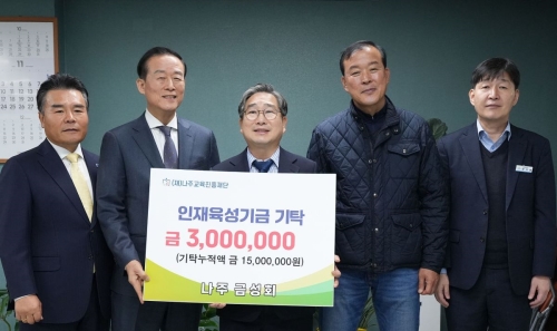 사진 설명 재경나주향우모임 나주 금성회가 지난 21일 지역 인재 육성을 위한 장학기금 300만 원을 기탁했다...