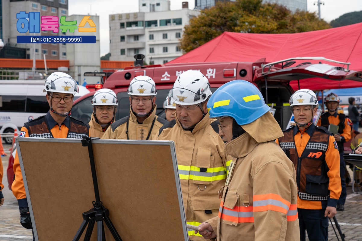 이번 훈련은 소노캄 호텔 일원에서 지진으로 인한 건물 붕괴와 선박 화재가 동시 발생하는 복합재난 상황을 가정하여 진행되었다.