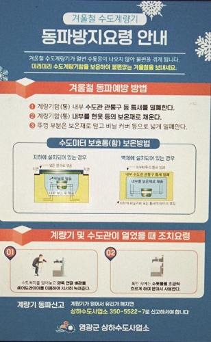 영광군 상하수도사업소(소장 심재식)는 겨울철 강추위로 인한 수도시설 동파 피해를 예방하기 위해 ‘수도계량기 ...