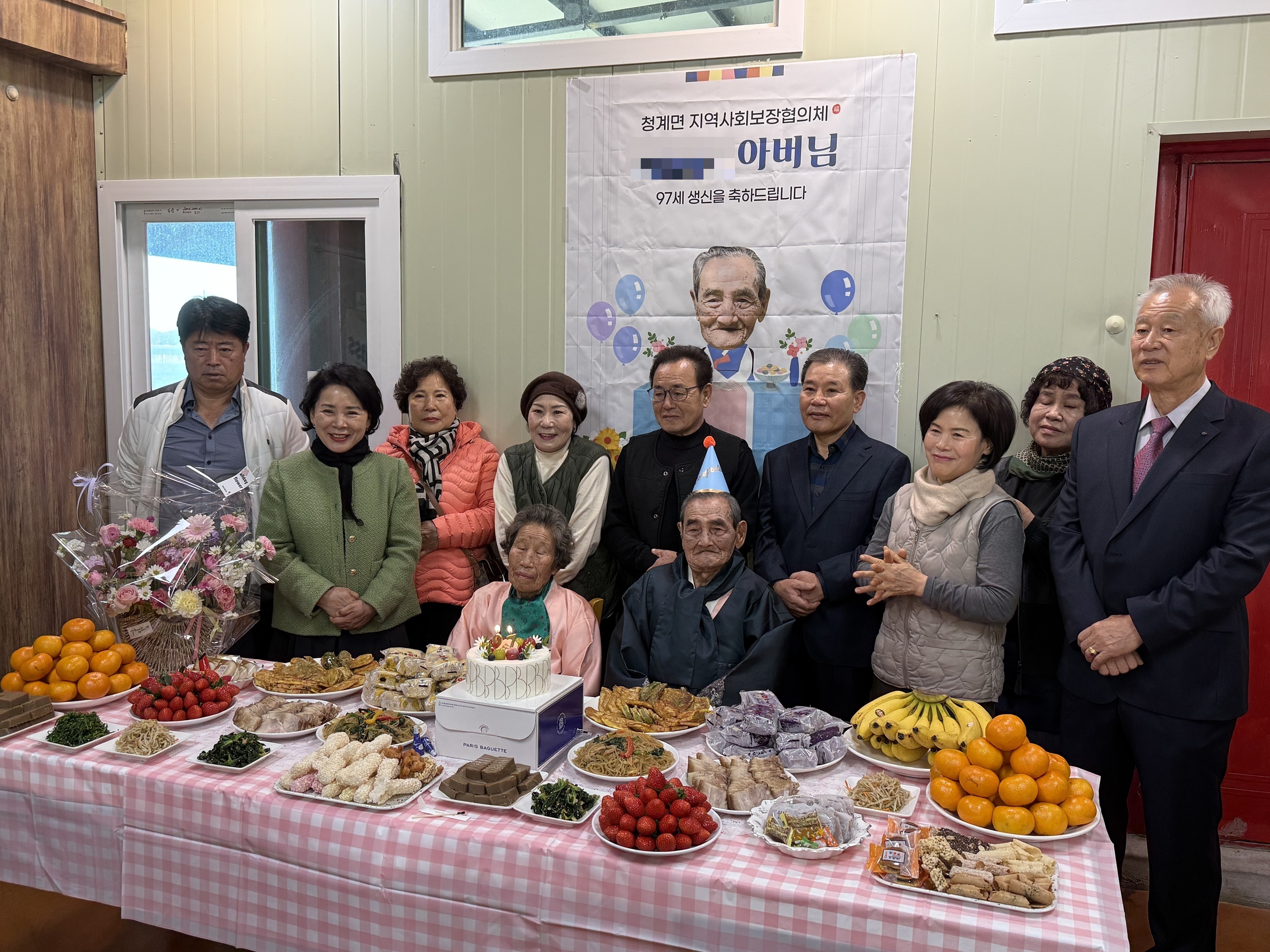 청계면에서는 12월 1일, 복길리에 거주하는 97세 어르신을 위한 생신상 차려드리기 행사가 열렸다. 마을 주민들이 정성과 마음을 담아 음식을 준비하고, 마을 잔치를 함께 열며 공동체의 따뜻한 정을 나누는 감동의 순간을 만들었다.