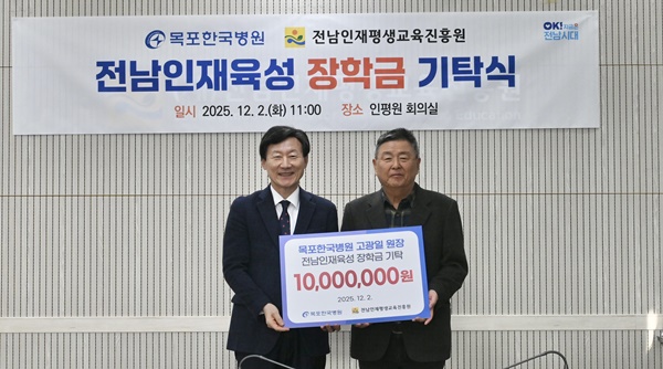 전라남도는 고광일 목포한국병원 원장은 2일 전남인재평생교육진흥원에 전남인재육성 장학금 1천만 원을 기탁했다고 밝혔다.