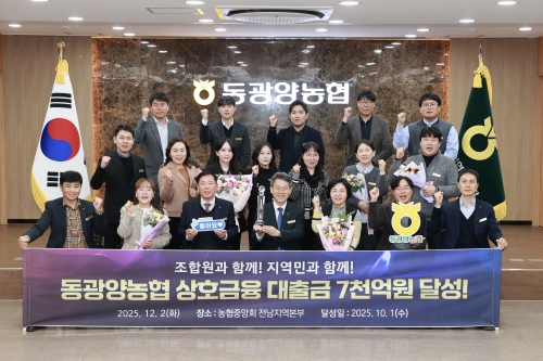 동광양농협(조합장 이돈성)은 2일 전남농협본부(본부장 이광일)에서 열린 시상식에서 ‘상호금융대출금 7000억...