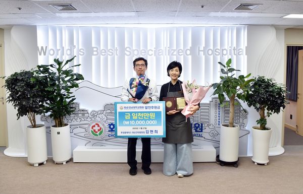 이번 후원금 전달은 지역사회와 병원이 함께 성장하고 나눔을 실천하기 위해 마련됐으며, 전달식 자리에서 민정준 병원장은 김현희 대표에게 감사패를 전달했다.