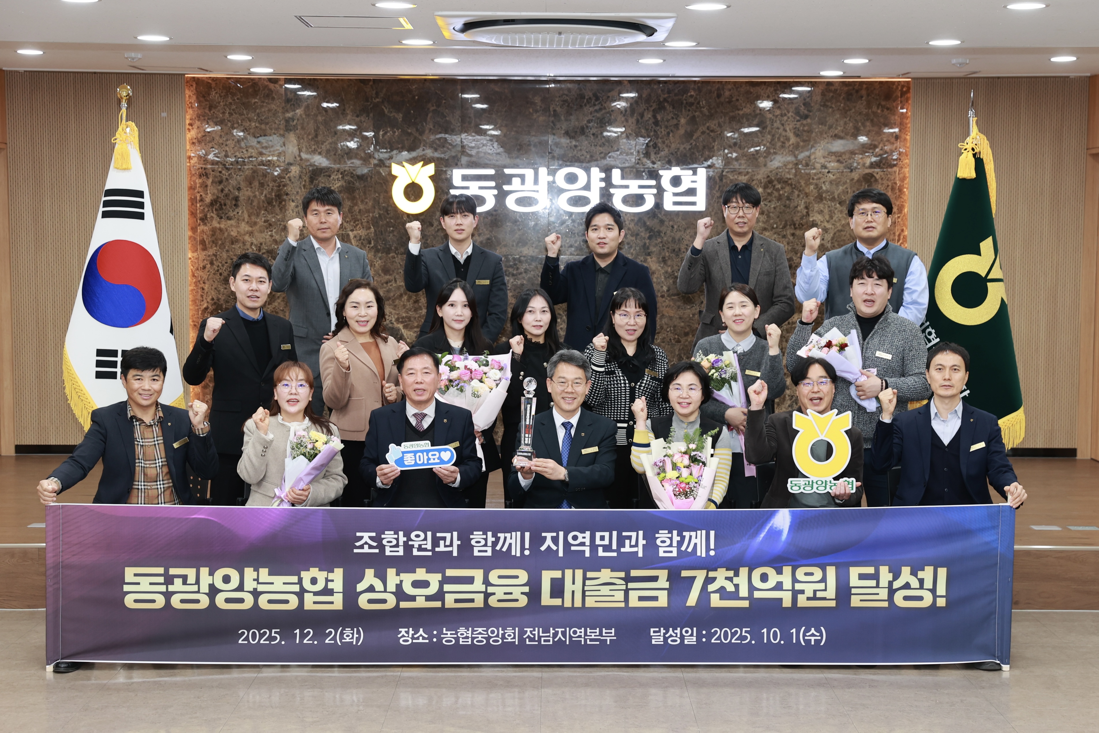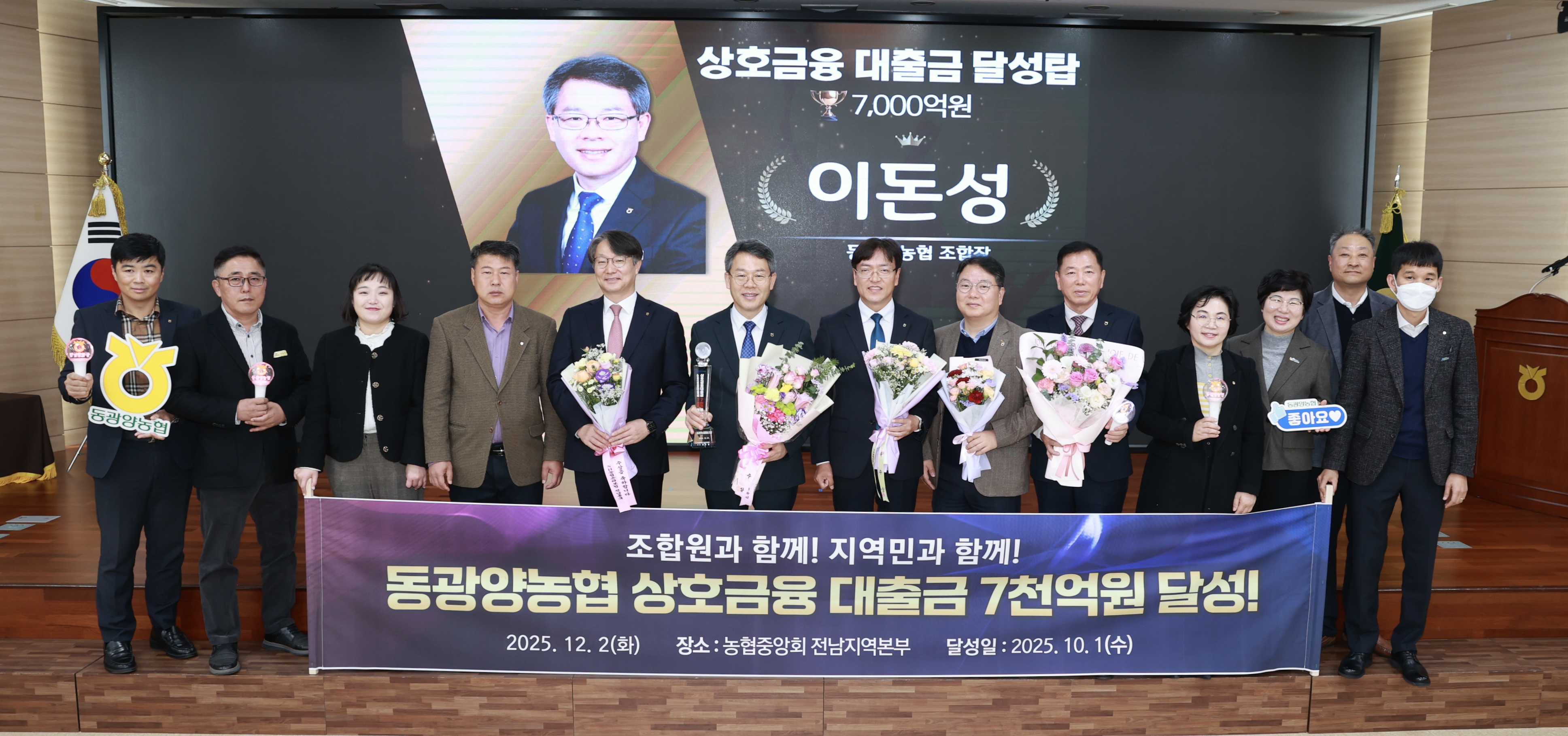 상호금융대출금 달성탑은 농·축협의 건전 경영과 지속 가능한 성장을 장려하기 위해 농협중앙회가 운영하는 제도다. 동광양농협은 지난해 6000억원 달성 이후 단 1년 만에 1000억원을 추가로 확대하며 우수한 성장 속도를 다시 한번 증명했다.