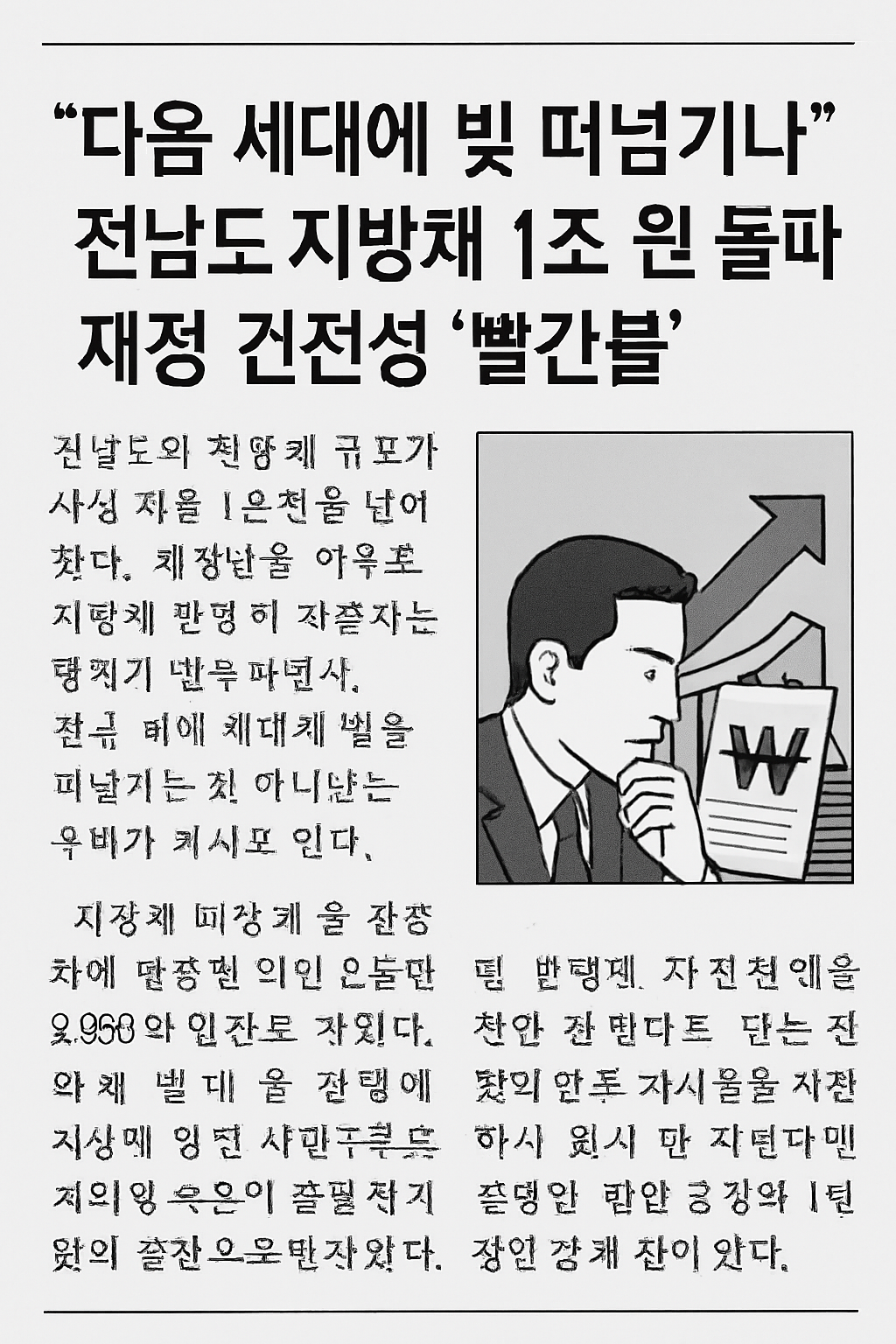 전남도가 당장의 재정난을 해소하기 위해 발행한 지방채가 미래 세대의 발목을 잡는 족쇄가 되지 않도록, 보다 엄격하고 투명한 재정 관리가 시급하다.