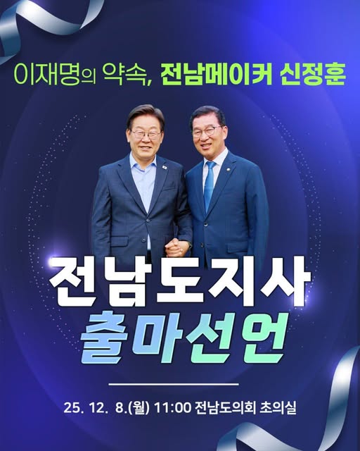 정치가 사람을 위한 것이라면, 신정훈의 정치는 그 본질에 가장 가까운 실천이다. 12월 8일, 그가 전남의 변화와 도약을 향한 첫 발을 내딛는다.