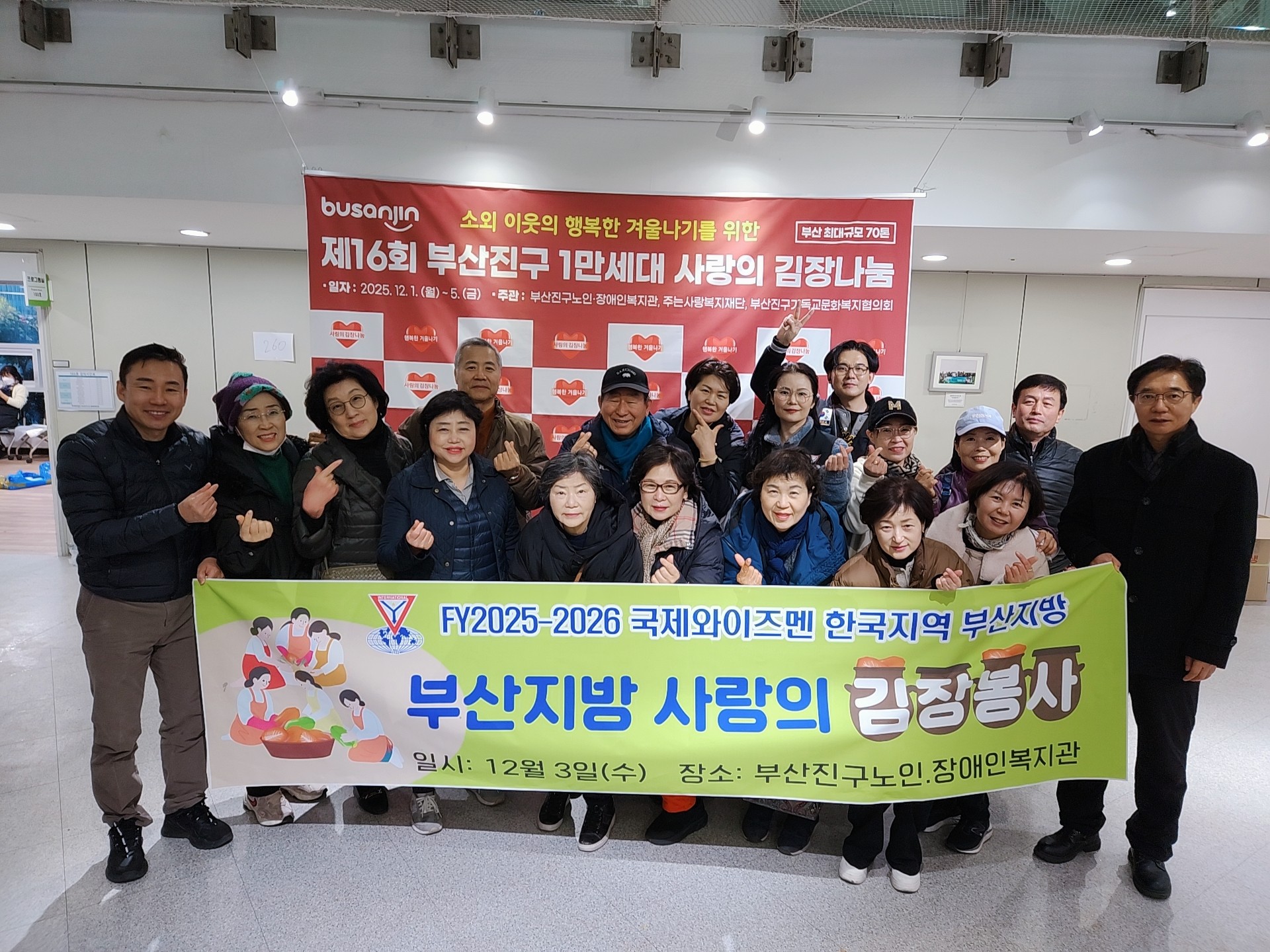 지난 3일 커넥트클럽 (회장 남성화)은 5개 클럽 (부산알파클럽, 세종우먼스클럽, 부산중앙클럽, 비치클럽, 커넥트클럽)은 부산진구 노인·장애인 종합복지관 (관장 강성주)에서 진행된 어려운 이웃들의 건강한 겨울나기를 돕기 위한 ‘제15회 1만 세대 사랑의 김장나눔’에 (사)국제와이즈멘 한국지역 부울경지구 부산지방 합동봉사로 참여했다.