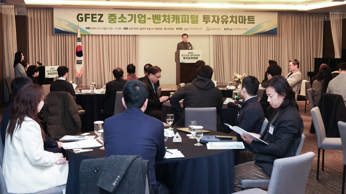 광양만권경제자유구역청(청장 구충곤, 이하 광양경자청)은 12월 5일 광주 라마다플라자 호텔에서 ‘2025년 전남 중소기업-벤처캐피털 투자유치마트’를 열어 지역 중소기업의 성장자금 조달을 지원하고 GFEZ 투자환경을 직접 알리는 자리를 마련했다고 밝혔다.
