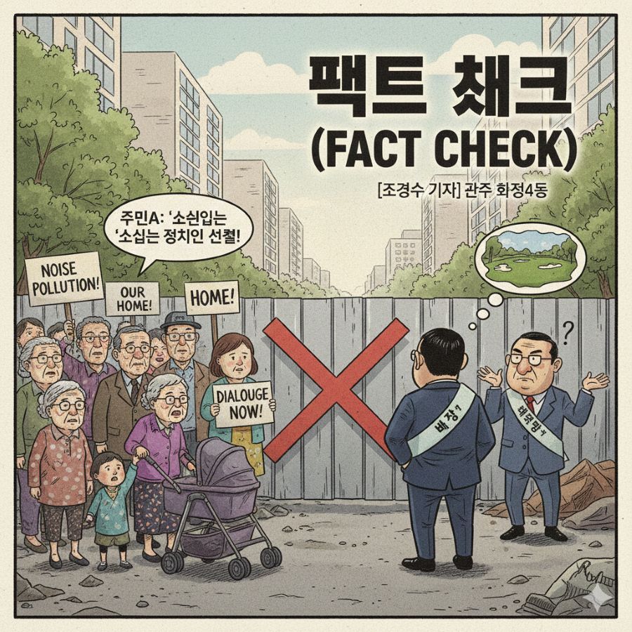 광주시 서구 화정4동 일대가 연일 아파트 신축 공사로 인한 소음과 기계 진동으로 신음하고 있다. '인간과 자연이 공존하는 천혜의 녹지'로 불리던 이곳은, 이제 도저히 사적 생활을 영위할 수 없는 '취약 환경' 속에서 혹독한 겨울을 맞이하는 처지가 되었다. 주민들의 일상이 파괴되고 있음에도 불구하고, 해당 집행 부서의 '손 놓은 듯한' 행태는 광주 시정에 대한 근본적인 의구심을 키우고 있다.