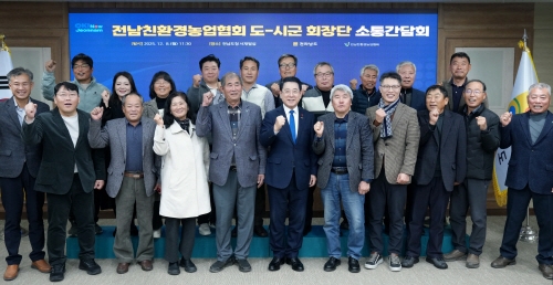 전라남도와 전남친환경농업협회는 8일 도청에서 도·시군 회장단이 함께하는 간담회를 열어 지속가능한 친환경농업 ...