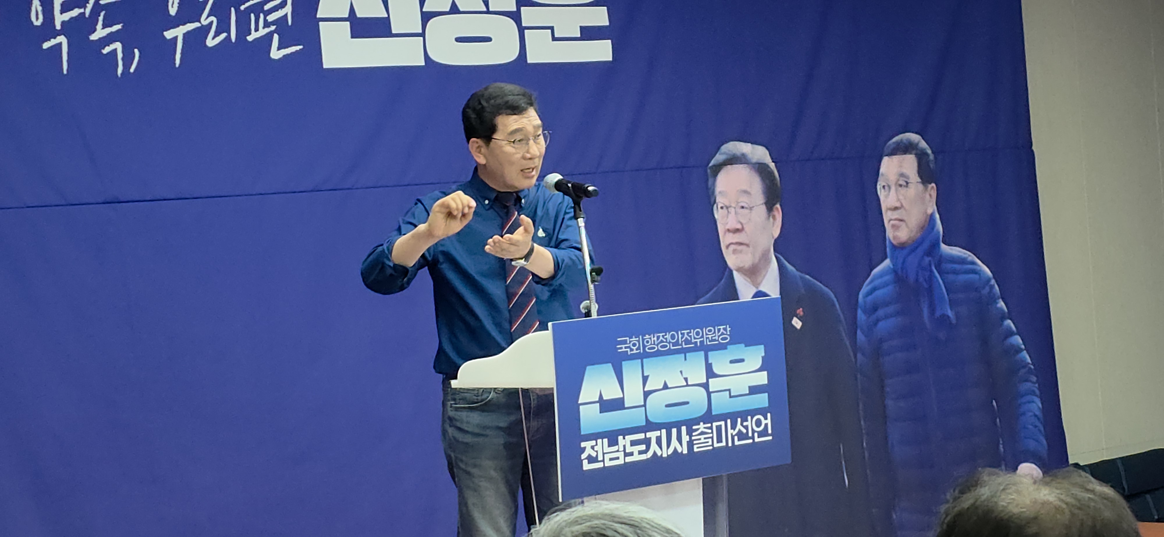 신정훈 후보는 "지방 소멸의 파도를 헤치며 균형 발전을 이끌어온 '기적의 승부사'"로 자신을 소개하며, "전남 도정 대전환을 통해 진정한 도민 주권 시대를 열겠다"는 강력한 포부를 밝혔다.