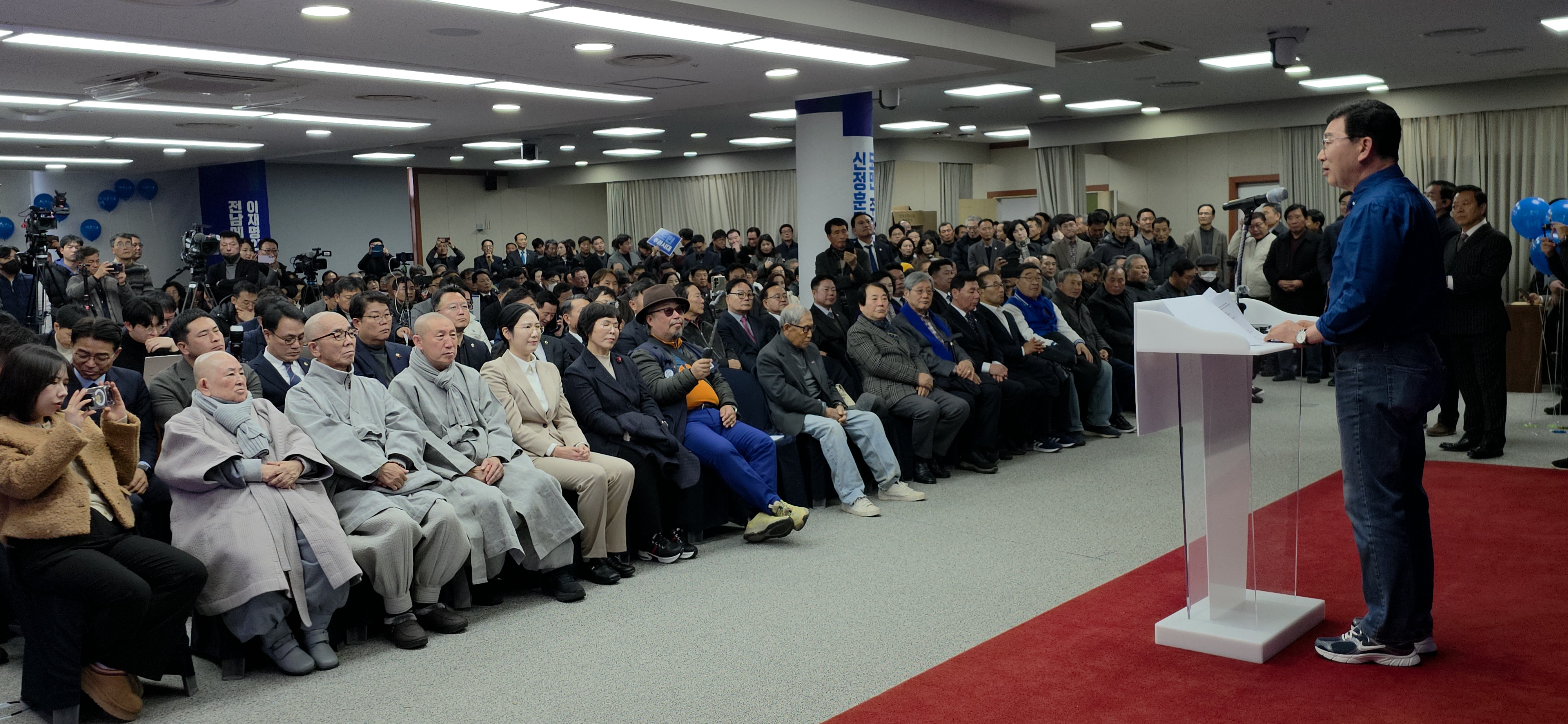 2025.12.08. 오전 11시경, 전라남도의회에서 신정훈 국회 행정안전위원장이 전남 도지사 출마를 공식 선언하는 기자회견이 성황리에 개최됐다. 이날 출마 선언장에는 전남 도민의 70%에 육박하는 압도적인 지지층과 각계 인사들이 한자리에 모여, 신 후보의 '도민 주권 대전환' 비전에 대한 기대와 뜨거운 열기를 실감케 했다.