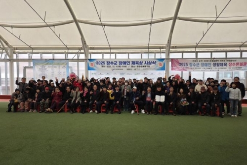 장수군은 11일 장수군론볼경기장에서 ‘장수군 장애인체육상 시상식’을 개최했다고 밝혔다. 이번 시상식은 한 해...