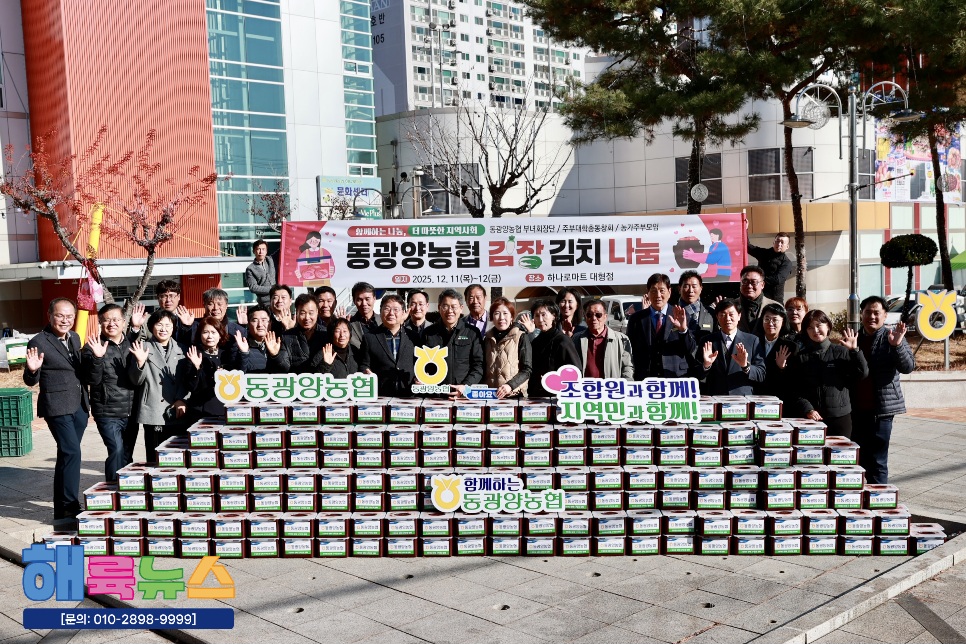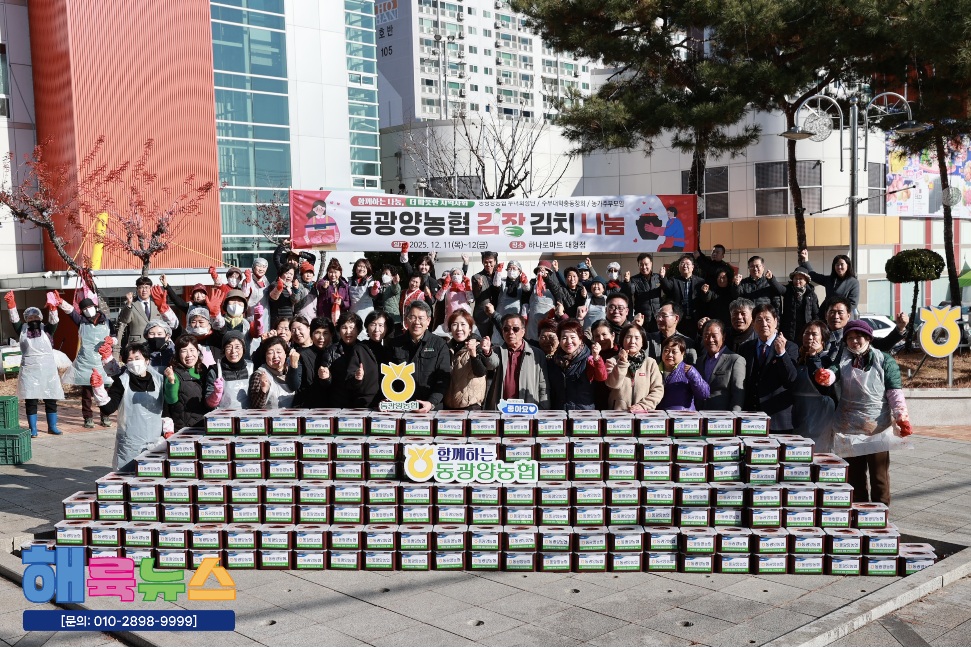 동광양농협(조합장 이돈성)은 12일 하나로마트 대형점에서 ‘동광양농협 김장 김치 나눔’ 행사를 열고 지역사회와 따뜻한 온정을 나누며 지역 농협으로서의 사회적 책임을 다시 한 번 실천했다.