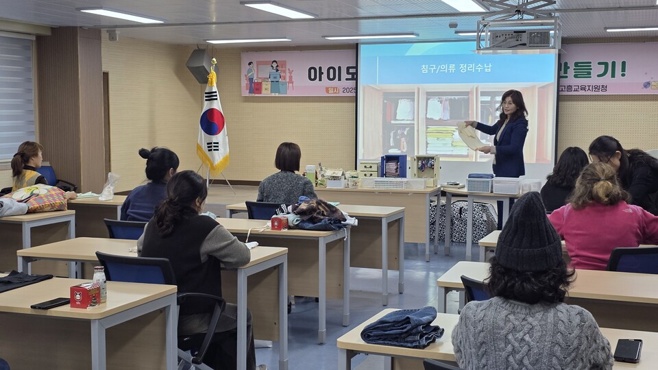 전라남도고흥교육지원청(교육장 권형선)은 12월 9일(화) 고흥 관내 학부모 20명을 대상으로 정리수납 교육과 친환경 생활 실천을 연계한‘2025 학부모 역량 강화 연수 프로그램’을 운영해 생활환경 개선과 자녀의 정리 습관 형성을 지원했다.
