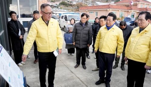 김영록 전라남도지사는 14일 완도군 약산면 득암어촌계 미역 피해 양식장을 찾아 피해 상황을 점검하고, 어려움...