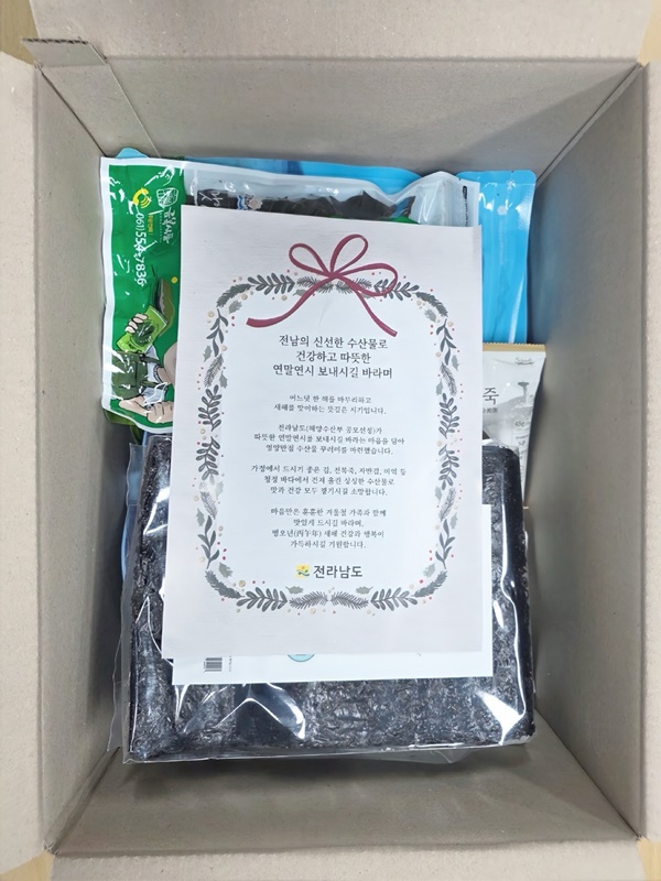 박영채 전남도 해양수산국장은 “이번 수산물 꾸러미 지원을 통해 연말연시 온정을 더하고 어가는 소비촉진을 통해 활력을 찾길 바란다”며 “2026년에도 산지 신선 수산물을 애용하도록 다양한 판로 개척에 힘쓰겠다”고 말했다.